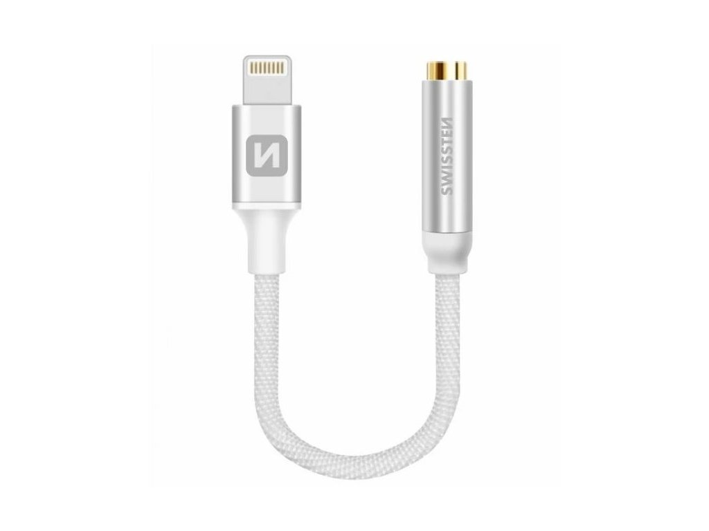 Swissten audio adaptér textile lightning /jack(samice) 0,15 m stříbrný 73501212