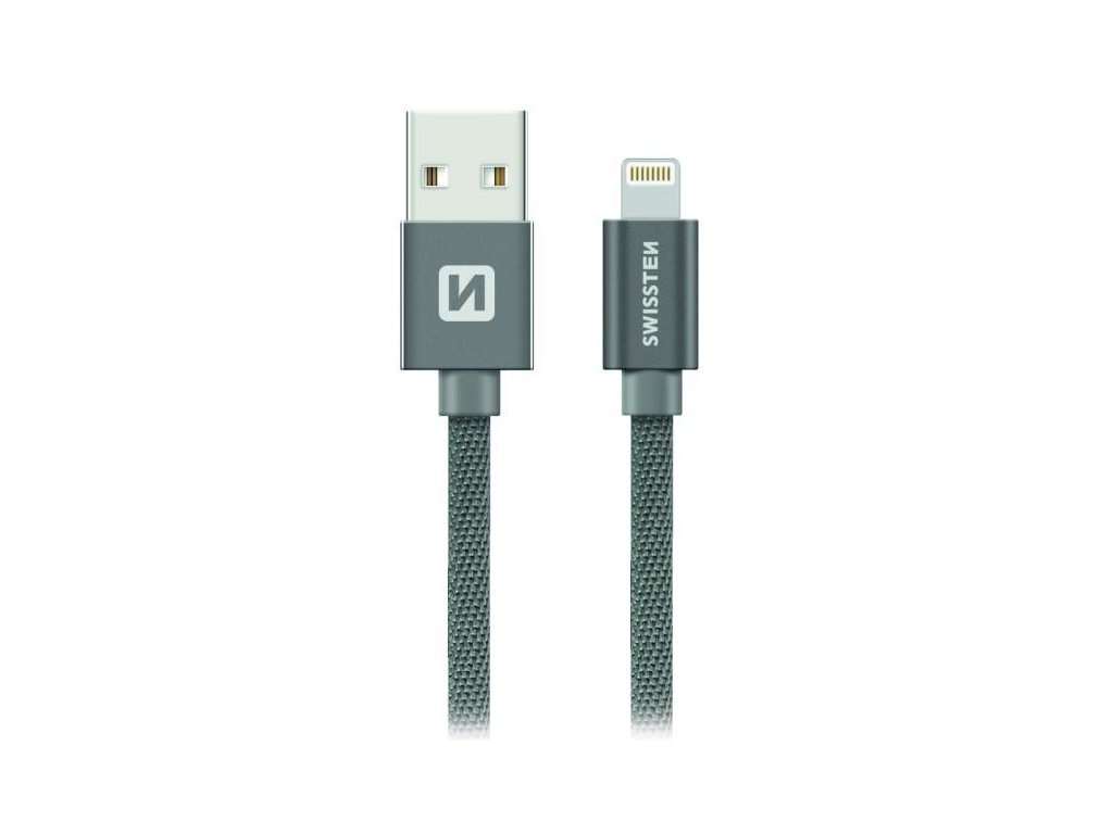 SWISSTEN USB 2.0 na Lightning 1,2 mKabel s kvalitním textilním opletením vhodný pro připojení zařízení s konektorem Apple Lightning k počítači. Podporuje nabíjení proudem až 3 A.