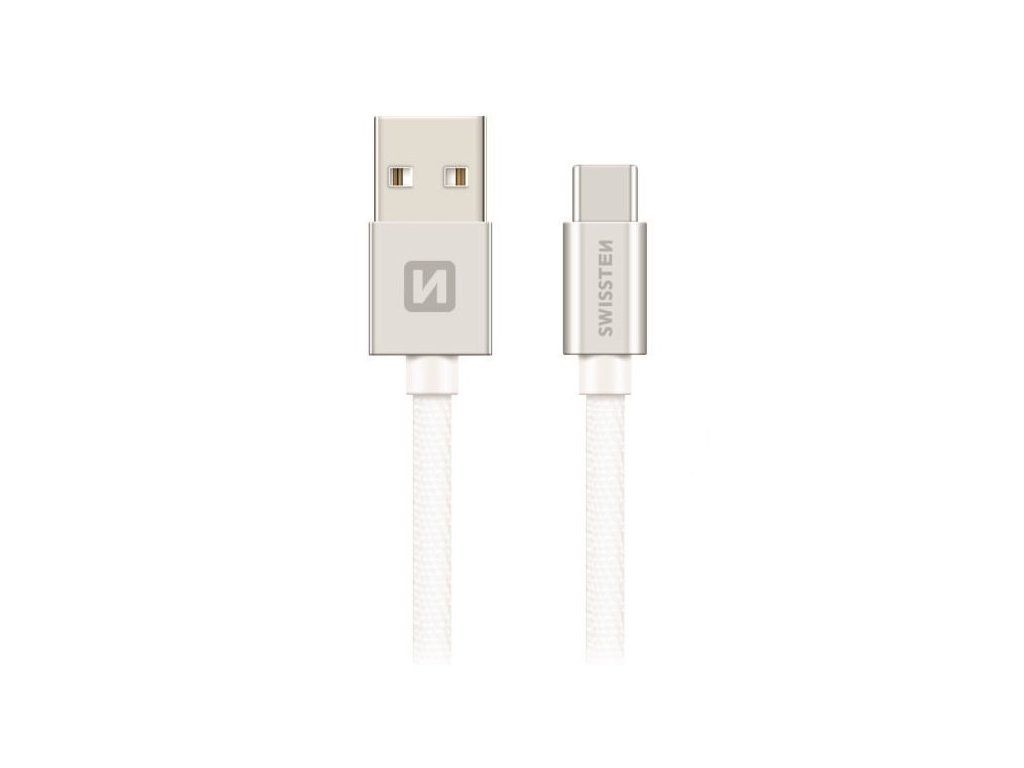 SWISSTEN USB 2.0 na USB-C 2 mKabel s kvalitním textilním opletením vhodný pro připojení zařízení s konektorem USB-C k počítači. Podporuje nabíjení proudem až 3 A.