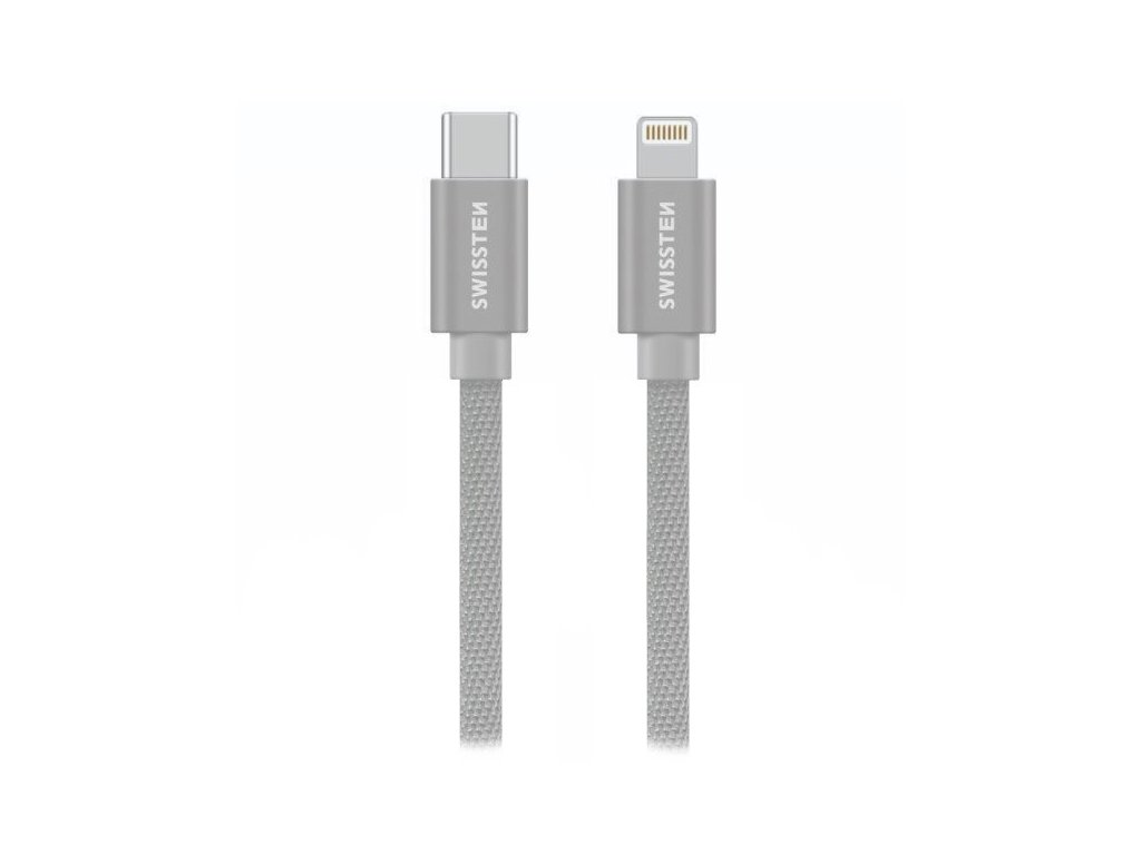 SWISSTEN TEXTILE USB-C na Lightning 2 mKabel s kvalitním textilním opletením vhodný pro připojení zařízení s konektorem Apple Lightning k zařízení s konektorem USB-C. Podporuje nabíjení proudem až 3 A a přenos dat rychlostí až 480 Mb/s. Konektory jsou pokryty eloxovaným hliníkem, který na vzduchu neoxiduje a vydrží i hrubší zacházení. Splňuje certifikaci MFi (Made For iPhone/iPad/iPod).