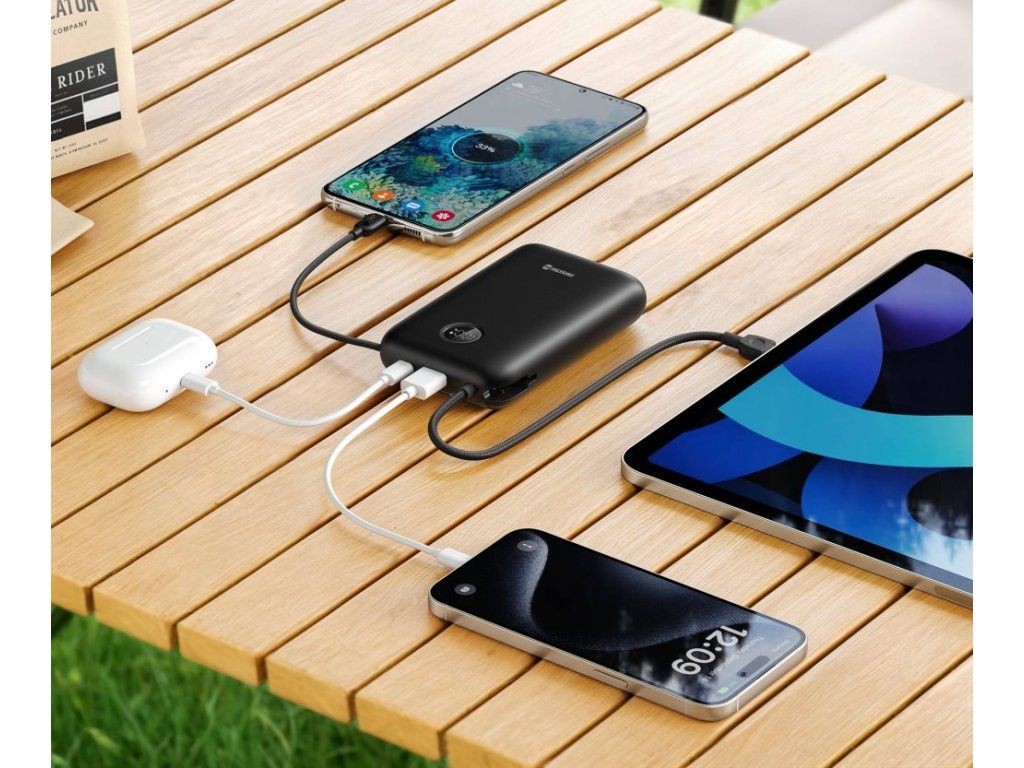 Powerbanka s kapacitou 20 000 mAh, navržená pro moderní uživatele, kteří potřebují nabíjet více zařízení současně. Nabízí jeden port USB-C, jeden port USB a integrované USB-C a Lightning kabely. Maximální výstupní výkon až 35 W umožňuje rychlé nabíjení telefonů, tabletů a menších notebooků. Potěší také praktický LED displej zobrazující aktuální stav nabití. Pro nabíjení samotné powerbanky slouží vstupní konektor USB-C. Vyrobena je z ohnivzdorného plastu, což výrazně zvyšuje její odolnost a bezpečnost.