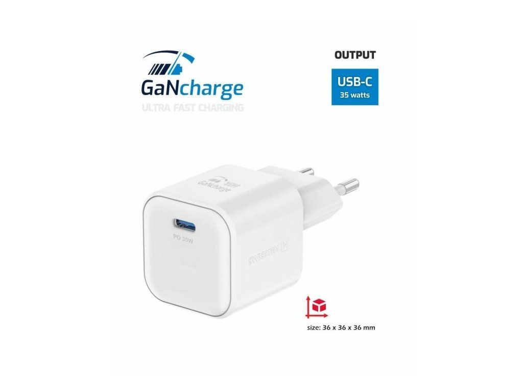 SWISSTEN GaN 1× USB-C PD 35 W + kabel USB-C/LightningUniverzální napájecí adaptér s výkonem až 35 W. Pro nabíjení zařízení je k dispozici konektor USB-C. Adaptér podporuje protokol rychlého nabíjení Power Delivery. Použitá GaN technologie snižuje tvorbu tepla, čímž zvyšuje účinnost nabíječky při zachování kompaktních rozměrů (přibližně 3,6 × 3,6 × 3,6 cm). Samozřejmostí je ochrana proti zkratování, přepětí, přetížení nabíjení a vysoké teplotě.