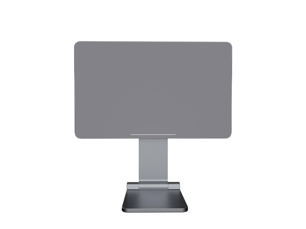 Magnetický stojan pre iPad Pro 12,9", robustný stabilný stojan s ergonomickým dizajnom, pomáha pri znížení únavy krku a chrbtice, prémiové remeselné spracovanie , stojan je vyrobený z vysoko kvalitnej zliatiny hliníka, všestranné otáčanie pre pohodlné sledovanie v akomkoľvek uhle, viacero nastaviteľných pozorovacích uhlov pre pohodlné čítanie, písanie alebo sledovanie, silná magnetická priľnavosť zabraňuje zošmyknutiu iPadu, otvor na stojane vyhradený pre kábel udržuje pracovný priestor úhľadný a čistý, silikónová gumená podložka stabilizuje stojan, určené pre iPad Pro 12,9", Rozmery: 260 x 252 mm, Hmotnosť: 830 g