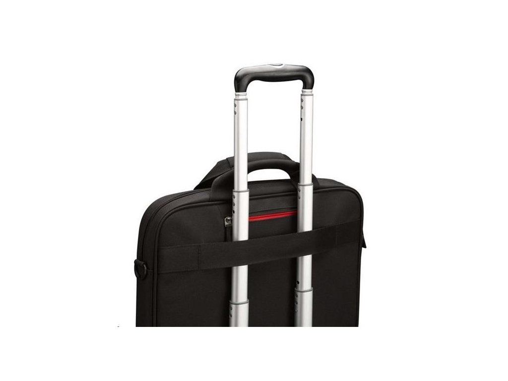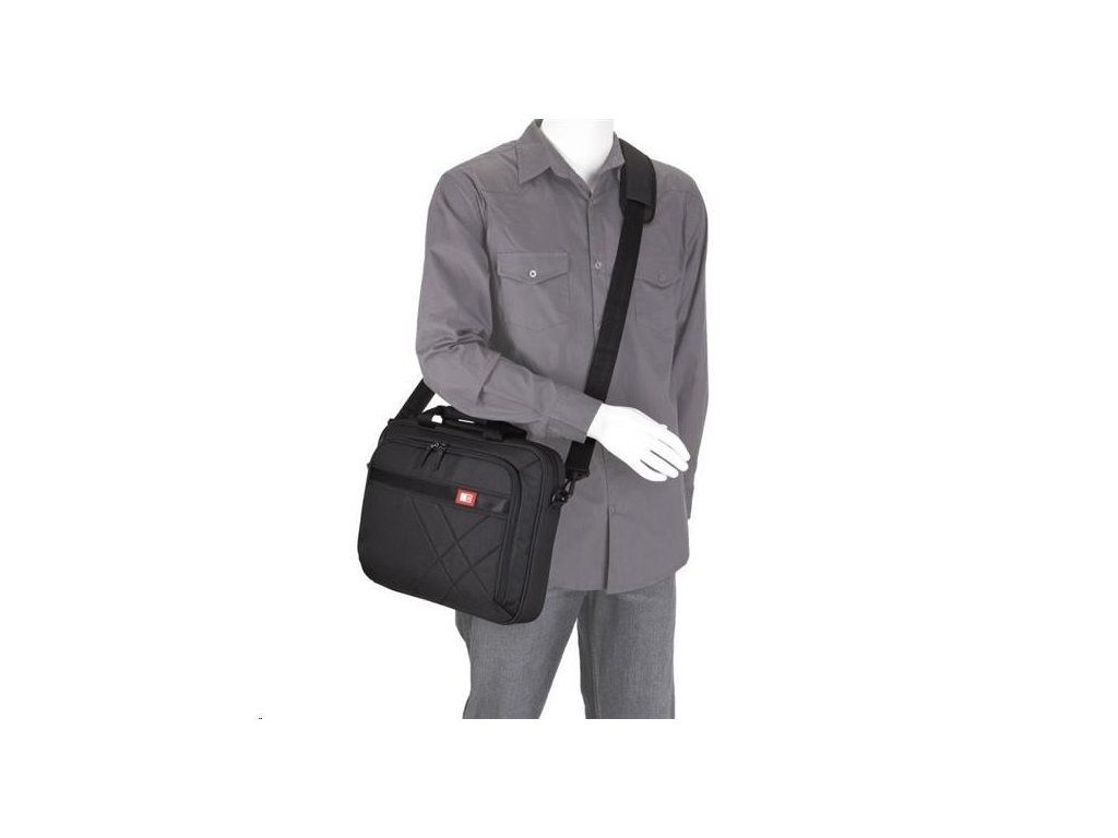 Robustná taška na každodenné intenzívne používanie. Pojme 15,6" notebook a 10,1" tablet, dokumenty, príslušenstvo a prenosnú elektroniku. Hlbokú čiernu farbu látky s asymetrickým vzorom vkusne dopĺňa červený akcent.