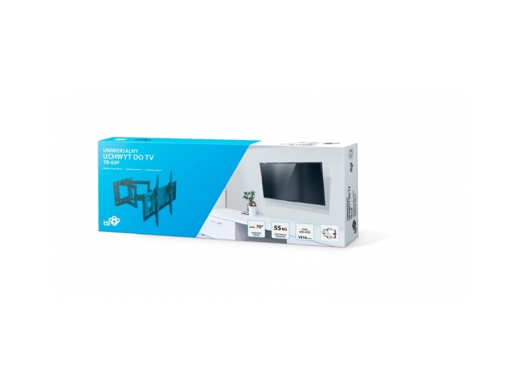 TB držák televize TB-63P 32-70'' 55 kg max. VESA 600x400 Použití: TV Typ: montáž na zeď Minimální rozměr TV: 32'' Maximální rozměr TV: 70'' VESA: *200x200 *400x200 *400x400 *600x400 Maximální zátěž: 55 kg Vertikální přizpůsobení: 15° Rozsah: 60-440 mm Uchycení do rohu: ne Barva: černáDodatočné parametre