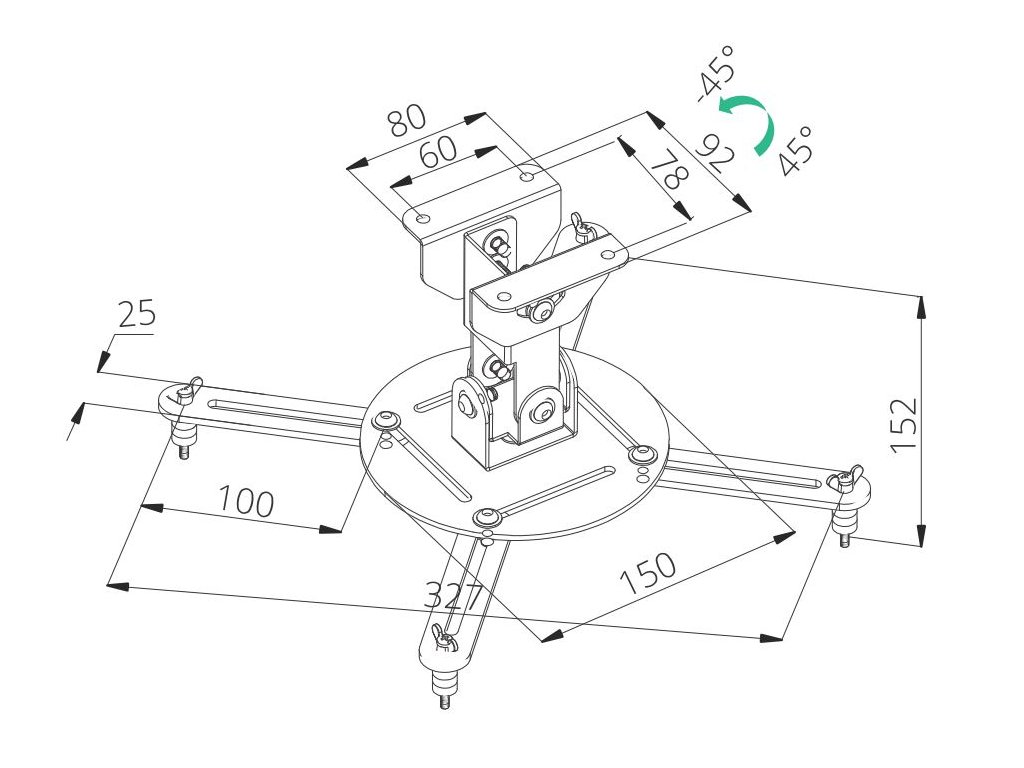Konstrukce pro upevnění projektoru na strop *Použití: projektor *Typ držáku: na strop *Maximální hmotnost: 10 kg *Materiál: kov *Barva: stříbrnáDodatočné parametre
