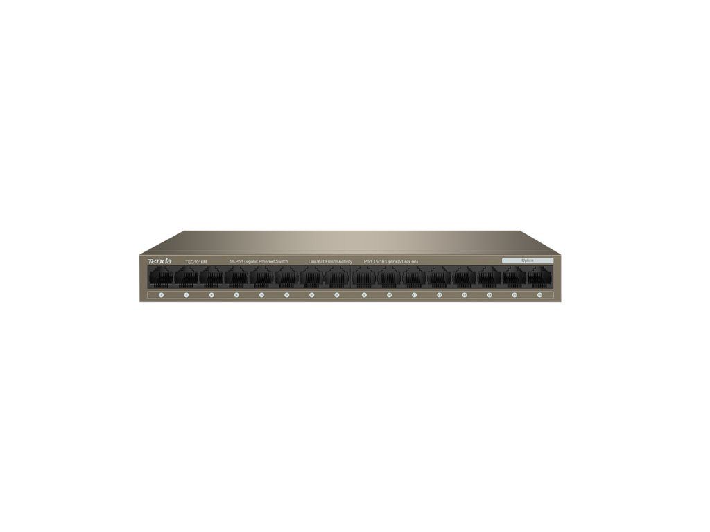 Tenda TEG1016M 16-port Gigabit Switch, 16x 10/100/1000 Mb/s, Fanless, MAC 8K, napájanie AC/DC, aj múr 75011925