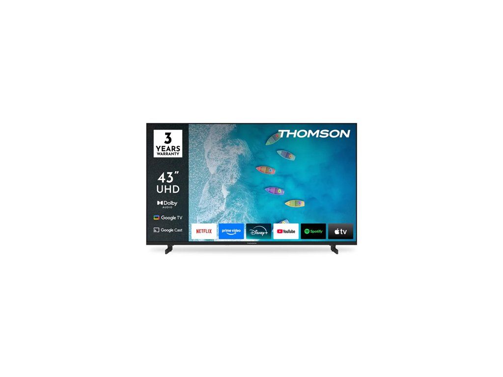 Vdýchnite život svojmu obľúbenému obsahu s televízorom Thomson Google TV 43" UHD, ktorý poskytuje úchvatný obraz v rozlíšení 4K Ultra HD pre skutočne pohlcujúci zážitok zo sledovania. Operačný systém Google 5.0 dokonale organizuje vaše aplikácie, predplatné a obľúbený obsah v jednom ľahko ovládateľnom rozhraní. Nastavte si viacero používateľských profilov a vychutnajte si personalizované odporúčania prispôsobené každému divákovi. Vďaka prístupu k viac ako 400 000 filmom a televíznym reláciám, inteligentnému hlasovému ovládaniu prostredníctvom služby Google Assistant a technológii Google Cast pre bezproblémové streamovanie z kompatibilných inteligentných zariadení nebola inteligentná zábava nikdy pohodlnejšia. Zažite ostrý obraz v rozlíšení 4K UHD, ktoré ponúka štyrikrát viac detailov ako Full HD. Vďaka podpore HDR10 si vychutnáte vylepšený kontrast, živé farby a vyvážený jas, ktoré oživia každú scénu s úžasným realizmom. Súčasťou balenia je ergonomický diaľkový ovládač s podsvietenými tlačidlami, vďaka čomu sa ľahko používa aj v prostredí so slabým osvetlením. Navyše, vďaka integrovanému Google Assistant môžete vyhľadávať obsah, dostávať návrhy na pozeranie alebo ovládať kompatibilné zariadenia inteligentnej domácnosti – jednoducho pomocou hlasu. Vstavaný trojitý tuner umožňuje flexibilný príjem cez satelit, pozemnú anténu alebo káblovú televíziu, čo vám umožní prístup k vašim obľúbeným kanálom. Či už streamujete, prehliadate web alebo sledujete živú televíziu, Thomson Google TV 43" UHD ponúka každý deň bezproblémový a vysokokvalitný zábavný zážitok.Dodatočné parametre