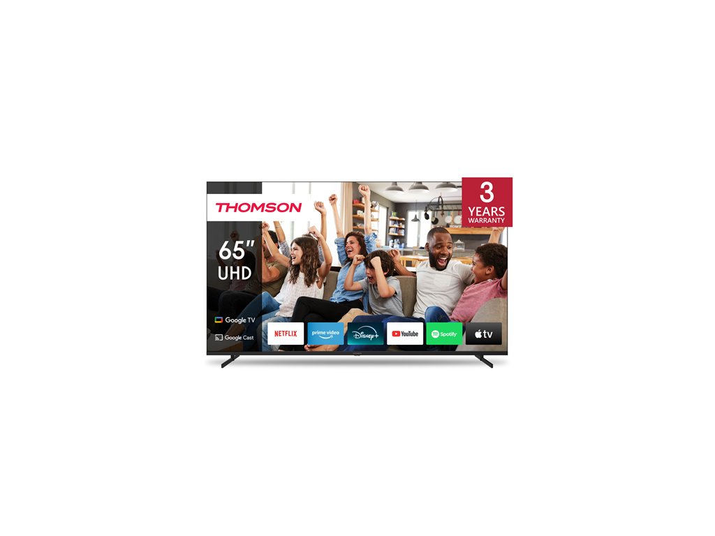 Vychutnajte si filmovú kvalitu obrazu na televízore Thomson Google TV 65" UHD. Google TV zjednodušuje váš zážitok zo zábavy organizovaním obsahu z vašich aplikácií a predplatných. Vytvorte si viacero používateľských profilov a využite vybrané odporúčania. Vychutnajte si širokú škálu inteligentných funkcií, ako je prístup k viac ako 400 000 filmom a televíznym reláciám, inteligentné hlasové ovládanie pomocou služby Google Assistant a Google Cast na streamovanie obsahu z kompatibilných inteligentných zariadení do vášho televízora. Ponorte sa do krištáľovo čistého obrazu v rozlíšení 4K UHD, ktoré zachytí každý detail vďaka štvornásobne vyššiemu rozlíšeniu ako Full HD. Technológia HDR10 vylepšuje každú scénu bohatými kontrastmi a vyváženým jasom, čím zabezpečuje presnú reprodukciu farieb a realistickú kvalitu obrazu. Ergonomické diaľkové ovládanie s hladkým podsvietením vám umožňuje mať všetko pod kontrolou, a to aj pri slabom osvetlení. Integrovaný Google Assistant vám umožňuje intuitívne ovládať televízor hlasovými povelami. Vyhľadávajte si obľúbené filmy, vyžiadajte si odporúčania na základe nálady alebo ovládajte kompatibilné inteligentné zariadenia – to všetko pohodlne pomocou hlasu. Vstavaný trojitý tuner umožňuje príjem cez satelitnú anténu, pozemnú anténu alebo káblovú televíziu. Môžete teda prijímať všetky dostupné kanály bez dodatočného hardvéru.Dodatočné parametre