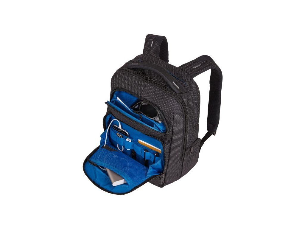 Usporiadajte malú elektroniku a príslušenstvo v prednom paneli s vreckami, elastickými pútkami, vreckom na zips a systémom vedenia káblov PowerPocket pre nabíjanie na cestách.
