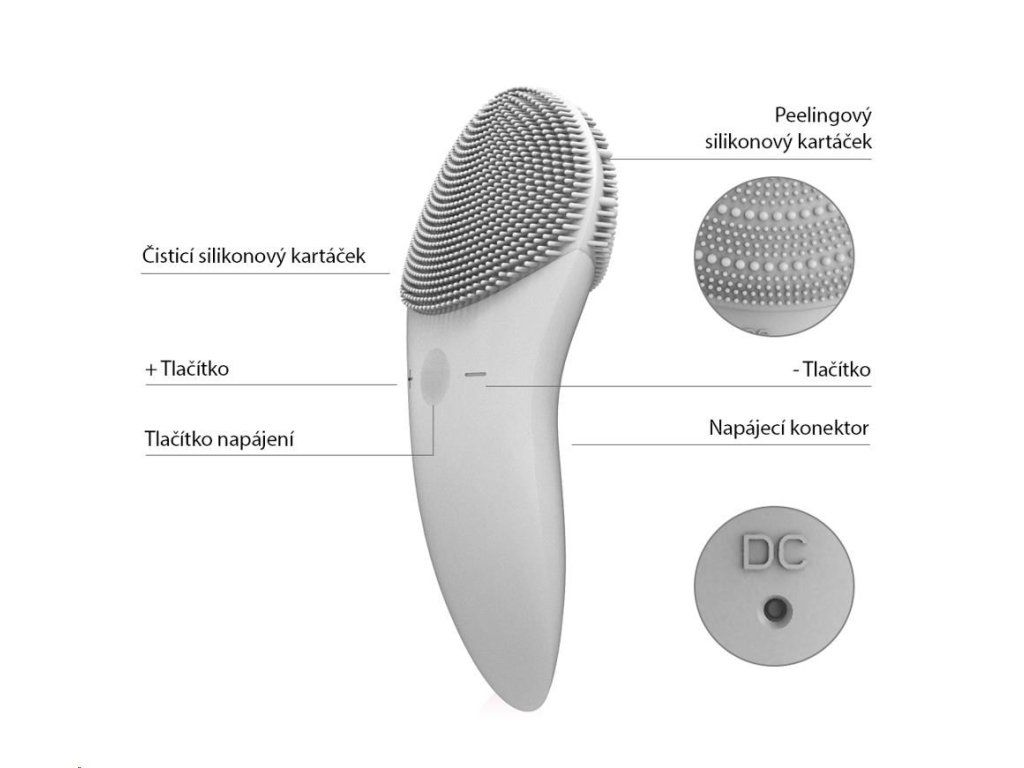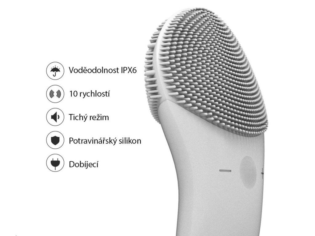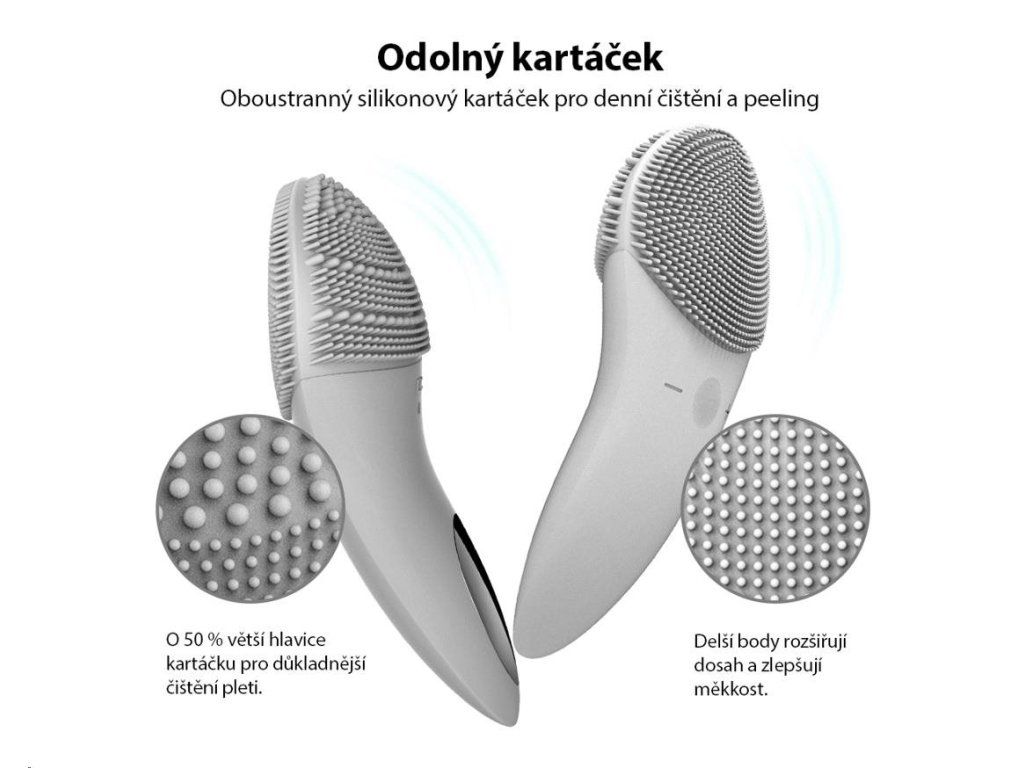 Každodenná čistiace plocha je vybavená jemnými silikónovými dotykovými bodmi, ktoré čistia tvár bez poškodenia pokožky.