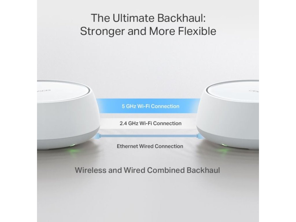 Jednotky Deco Mesh vytvárajú zjednotenú sieť s jedným názvom. Vďaka vstavanej technológii prepínania medzi zariadeniami, ktoré je riadené umelou inteligenciou, vytvára ideálne riešenie Wi-Fi siete s pokročilými algoritmami a automatickým učením. Pohybujte sa po domácnosti a doprajte si ničím nerušené streamovanie s najvyššími možnými prenosovými rýchlosťami.