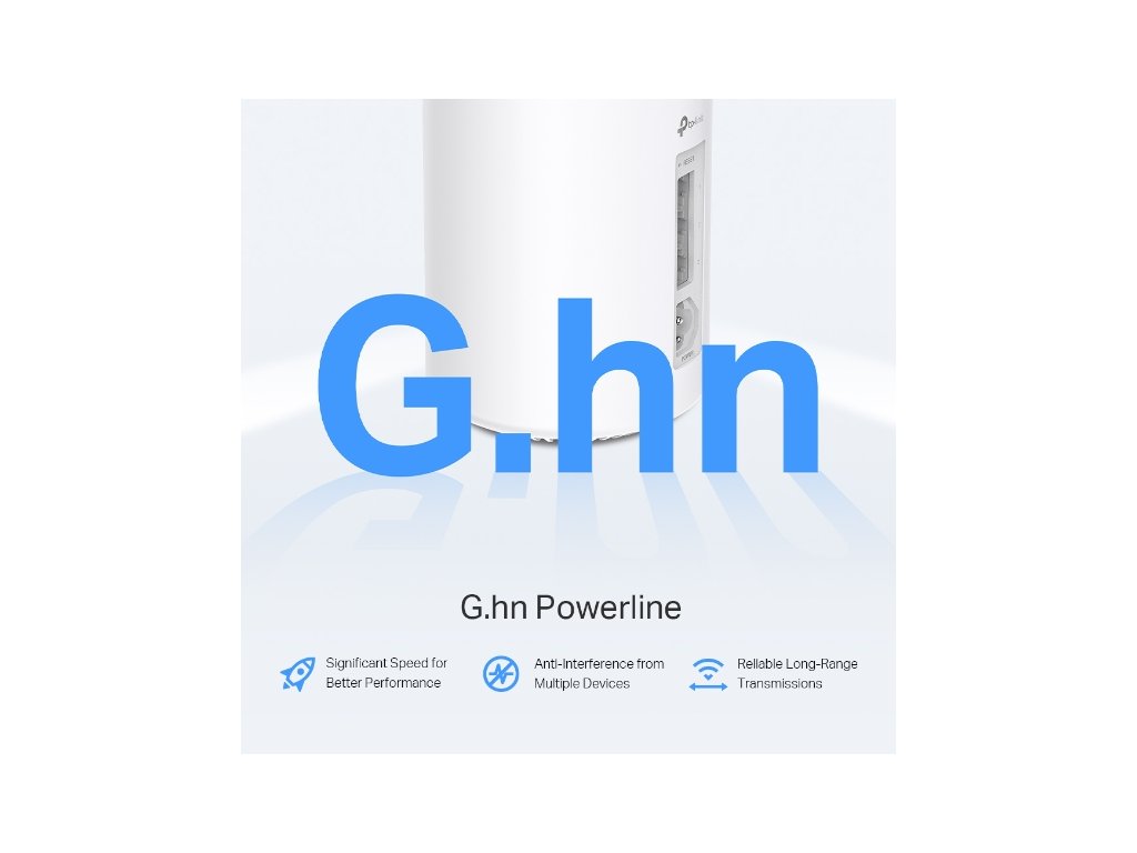 AX3000 + G1500 Whole Home Powerline Mesh Wi-Fi 6 System, rýchlosti: 574 Mbps at 2.4 GHz + 2402 Mbps at 5 GHz + 1428 Mbps Powerline, 2x Internal Antennas, 3x Gigabit Ports (WAN/LAN auto-sensing), G.hn Powerline (sieť G.hn Powerline dosahuje rýchlosť až 1500 Mbps), Deco App, Router/AP Mode, IPv6, IPTV, HomeShield (rodičovská kontrola, Antivirus, QoS, Reports), OFDMA, MU-MIMO, 1024-QAM, HE160, WPA3, Beamforming, podpora Alexa, 3x gigabitové porty poskytujú dostatočnú konektivitu, poskytuje komplexnú sieťovú ochranu, robustnú rodičovskú kontrolu a zabezpečenie internetu vecí v reálnom čase