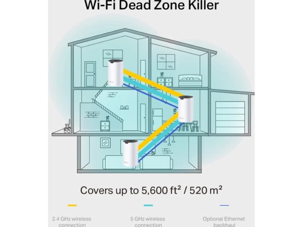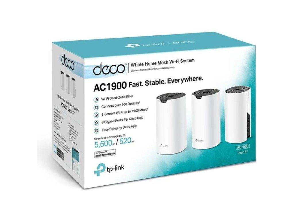 Deco S7 je výkonný Mesh systém AC1900 s Wi-Fi pre celoplošné pokrytie domácnosti. Deco S7 ponúka jednoduchý spôsob, ako zaistiť silný WiFi signál v každom rohu vášho domu, na ploche až 195 m2 (sada s 1 jednotkou). Bezdrôtové pripojenia a voliteľné chrbticové ethernetové pripojenie pracujú spoločne na prepojení jednotiek Deco, vďaka čomu bude vaša sieť rýchlejšia a zaistí neprerušované pripojenie všetkých zariadení.