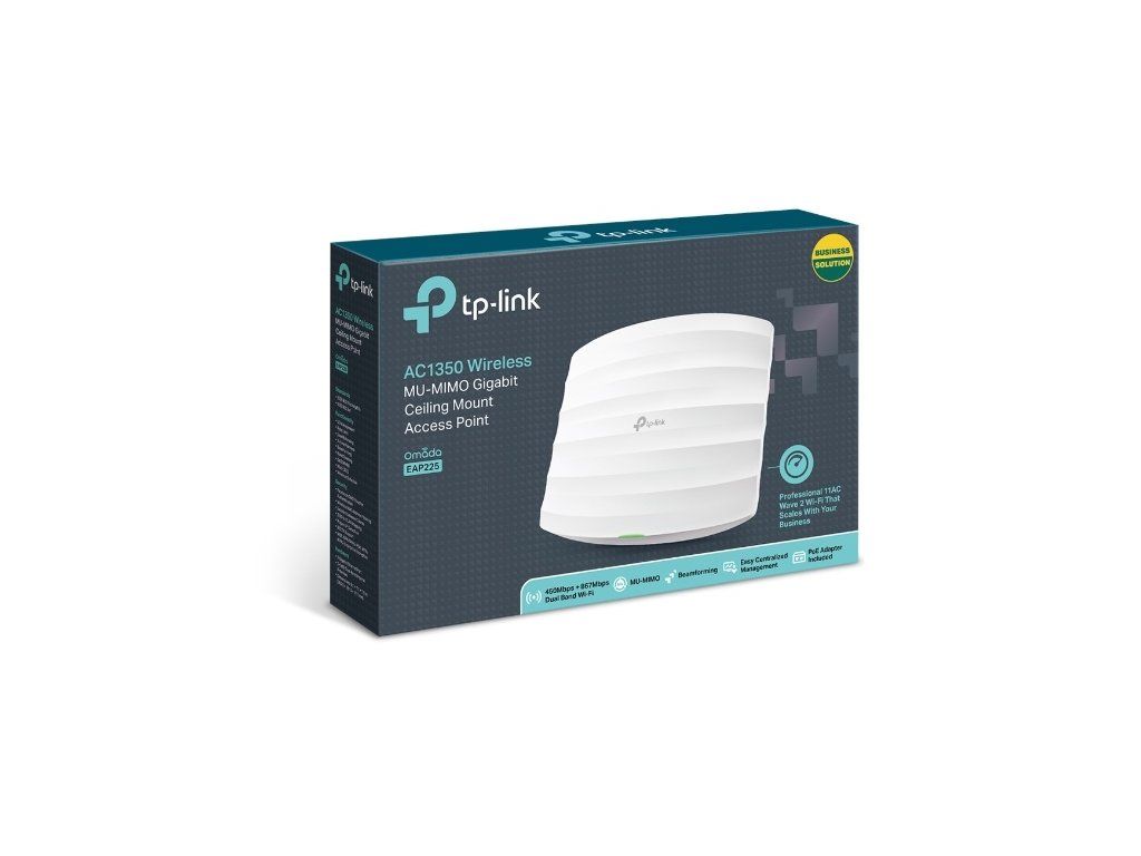 AC1350 Wireless Dual Band Gigabit Ceiling Mount Access Point, Qualcomm, 450Mbps v 2.4GHz + 867Mbps v 5GHz, 802.11a/b/g/n/ac, Beamforming, 1 Gigabit LAN, 802.3af PoE Supported, Centralized Management, Captive Portal, Multi-SSID, 4 x interná anténa, Ceiling/montáž na stenu