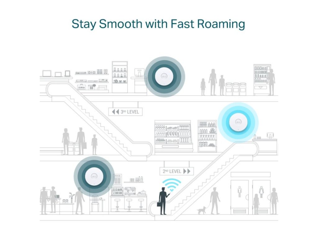Prístupový bod - AX1800 Ceiling Mount Dual-Band Wi-Fi 6 Access Point, porty: 1x Gigabit RJ45 Port, rýchlosti: 574Mbps at 2.4 GHz + 1201 Mbps at 5 GHz, 802.3at POE and 12V DC, 4×Internal Antennas, MU-MIMO, Seamless Roaming, Band Steering, Beamforming, Load Balance, Airtime Fairness, Centralized Management by Omada SDN Controller, Omada App