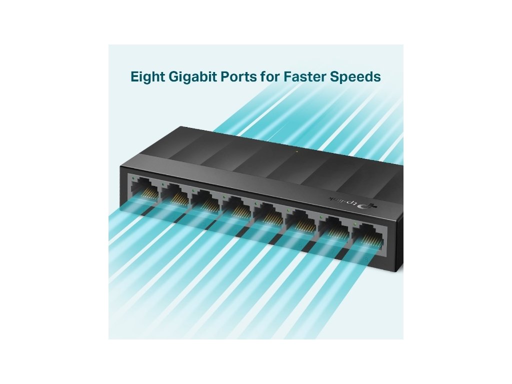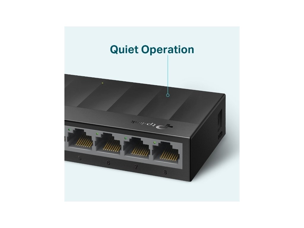 Stolný prepínač s 8x10 / 100/1000 Mb / s RJ-45 porty automatickú adaptáciou s podporou Auto-MDI / MDIX. Odolné puzdro a desktopový dizajn; plug and play, bez nutnosti konfigurácie. Dizajn bez ventilátora zabezpečuje tichú prevádzku.