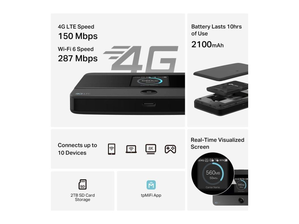 TP-Link M7352 přenosný WiFi4 router (4G LTE, 2,4GHz, 1xUSB-C, 1xnanoSIM, 1xmicroSD) M7352