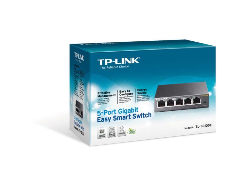 Gigabit Ethernet prepínač so základným managementom do domácnosti či kancelárie, 5x port 10/100/1000 Mb/s s konektorom RJ-45, Auto MDI-MDIX, port a tag QoS, tabuľka MAC adries 8K, paketový buffer 2Mb, rýchlosť prenosu paketov až 7.4 mpps, podpora Jumbo Frame 16KB, úspornú prevádzku.
