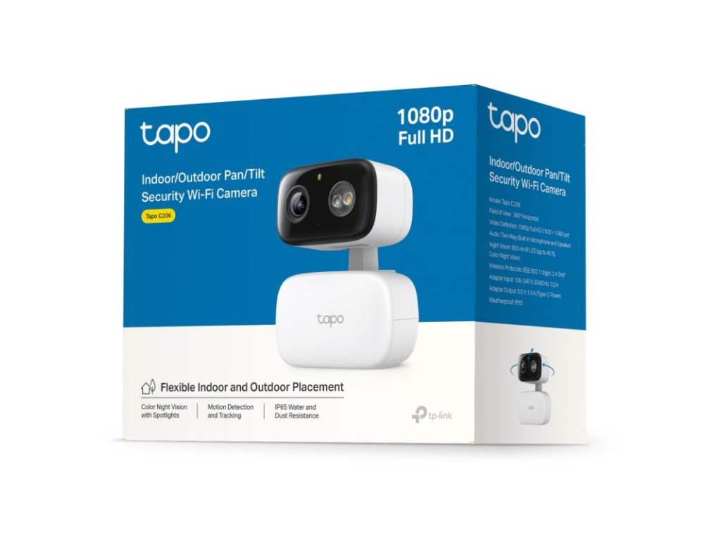 Táto všestranná bezpečnostná kamera TP-Link Tapo C206 je navrhnutá pre flexibilné umiestnenie v interiéri aj exteriéri. Poskytuje komplexnú ochranu s Full HD 1080p živým prenosom a zobrazením živých farieb dokonca aj v noci.