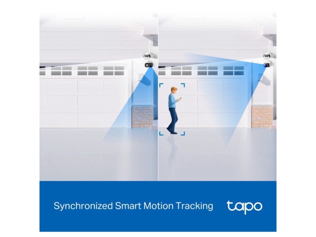 Synchronizované inteligentné sledovanie - Keď pevný objektív detekuje udalosti, natáčací objektív sa automaticky otočí a zaostrí na pohybujúci sa objekt a sleduje ho.