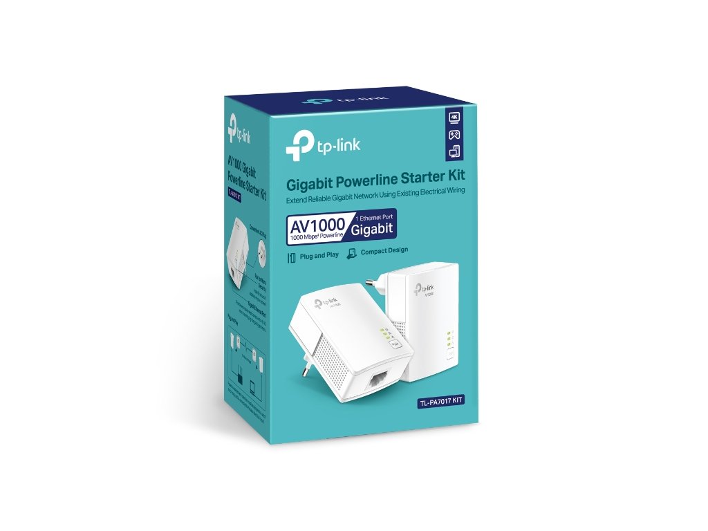 AV1000 Gigabit Powerline Starter Kit (bez prechodových zásuviek), rýchlosť: 1000 Mbps Powerline, Broadcom CPU, HomePlug AV2, 1x Gigabit Port, Plug and Play, tpPLC Utility, Pair for More Security, sada obsahuje: 2x TL-PA7017