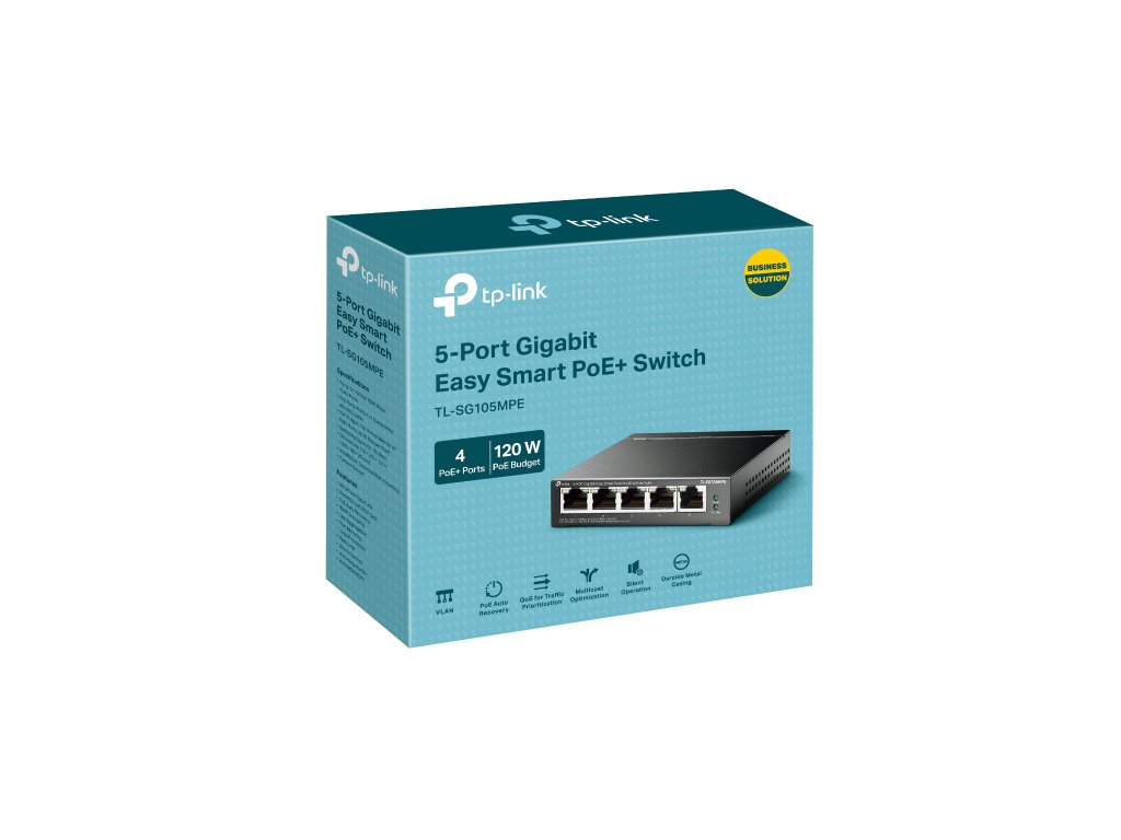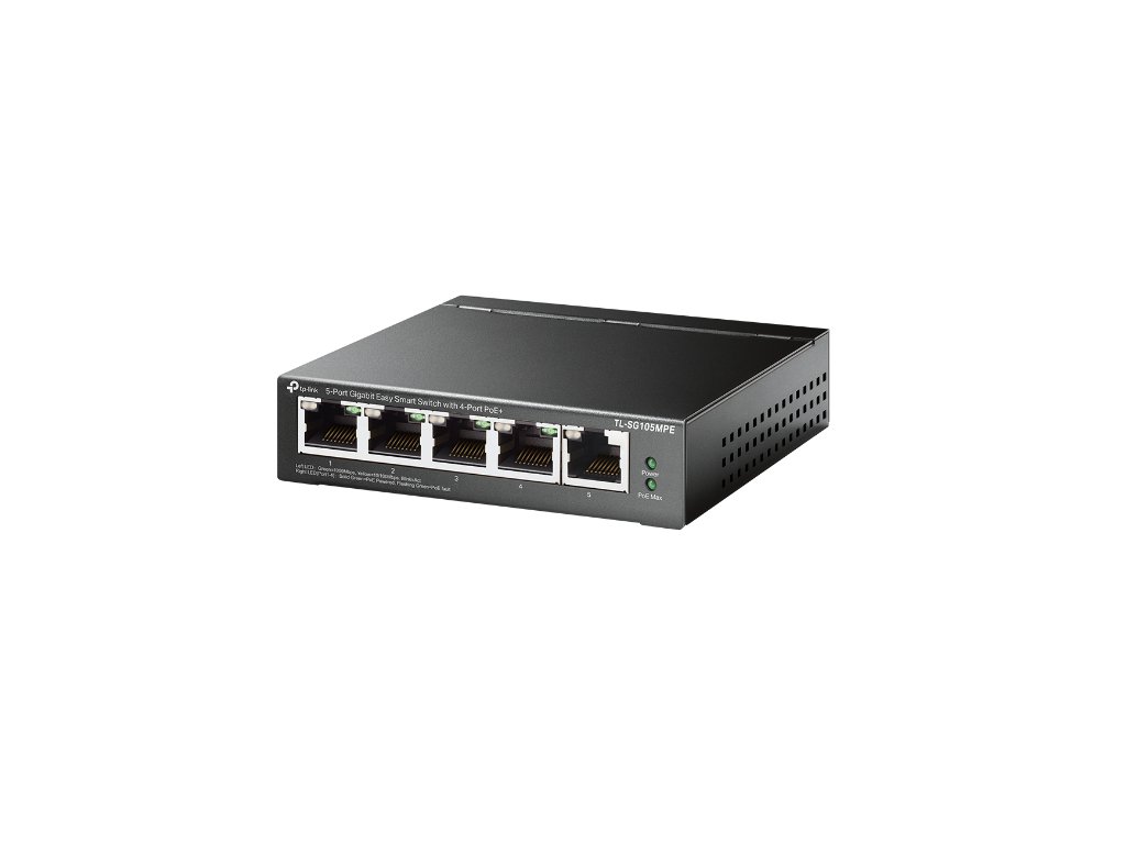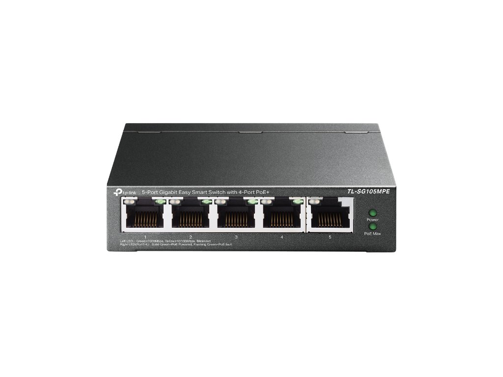 5-portový gigabitový jednoduchý inteligentný prepínač so 4 portmi PoE+. Päť 10/100/1000 Mbps RJ45 portov. Vybavený štyrmi portami 802.3af/at PoE+ s výkonom až 30 W pre každý port, dáta a napájanie je možné prenášať jedným káblom. Podporuje napájanie PoE až do 120 W pre všetky porty PoE. Poskytuje monitorovanie siete, prioritizáciu prevádzky, funkcie VLAN a PoE Auto Recovery. Jednoduché nastavenie siete na vrchole pripojenia typu plug-and-play. Webové používateľské rozhranie a Easy Smart Configuration Utility zjednodušujú konfiguráciu. Dizajn bez ventilátora znižuje spotrebu energie a eliminuje prevádzkový hluk