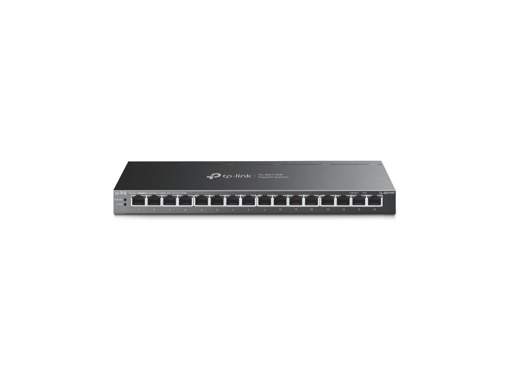HARDWARE FEATURES Interface *16× 10/100/1000Mbps RJ45 Ports *AUTO Negotiation *AUTO MDI/MDIX Network Media *10BASE-T: UTP category 3, 4, 5 cable (maximum 100m) *EIA/TIA-568 100? STP (maximum 100m) *100BASE-TX: UTP category 5, 5e cable (maximum 100m) *EIA/TIA-568 100? STP (maximum 100m) *1000BASE-T: UTP category 5, 5e, 6 or above cable (maximum 100m) *EIA/TIA-568 100? STP (maximum 100m) Fan Quantity *Fanless External Power Supply *External Power Adapter (Output: 53.5 VDC / 2.43 A) Packet Forwarding Rate *23.8 Mpps PoE Ports (RJ45) *Standard: 802.3 af/at compliant *PoE Ports: Ports 1–16 *Power Supply: 120 W Mac Address Table *8K, Auto-learning, Auto-aging Switching Capacity *32 Gbps Dimensions ( W x D x H ) *11.3 × 4.4 × 1.0 in (286 × 111.7 × 25.4 mm) Max Power Consumption *11.72 W (220 V / 50 Hz no PD connected) / 11.56 W (110 V / 60 Hz no PD connected) *142.51 W (220 V / 50 Hz with 120 W* PD connected) / 144.28 W (110 V / 60 Hz with 120 W* PD connected) Max Heat Dissipation *39.85 BTU/h (220 V / 50 Hz no PD connected) / 39.31 BTU/h (110 V / 60 Hz no PD connected) *484.53 BTU/h (220 V / 50 Hz with 120 W* PD connected) / 490.55 BTU/h (110 V / 60 Hz with 120 W* PD connected) SOFTWARE FEATURES Advanced Features *Compatible With IEEE 802.3af/at Compliant PDs *Extend Mode Button (Ports 1–4, Up to 250 m PoE power supply and data transmission) *Priority Mode Button (Ports 1–4) *Isolation Mode Button (Ports 1–7 / 8-14) *PoE Auto Recovery (Ports 1-16) *Mac Address Auto-Learning And Auto-Aging *IEEE 802.3x Flow Control *802.1p/DSCP QoS *IGMP Snooping Transfer Method *Store-And-Forward OTHERS Certification *FCC, CE, RoHS Package Contents *TL-SG116P *Power Adapter *Installation Guide Environment *Operating Temperature: 0–40 °C (32–104 °F), *Storage Temperature: -40–70 °C (-40–158 °F) *Operating Humidity: 10–90% RH non-condensing *Storage Humidity: 5–90% RH non-condensing