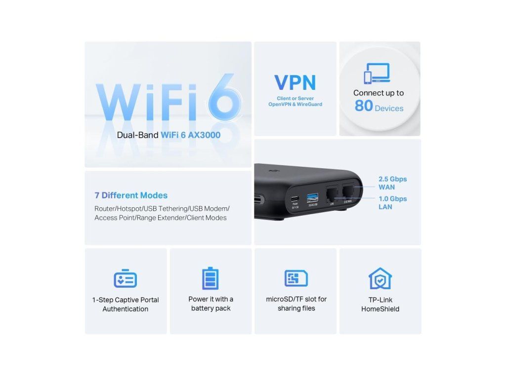 Gigabitový prenosný cestovný Wi-Fi 6 AX3000 router