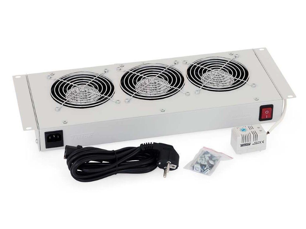 Triton RAC-CH-X26-X1; Ventilační jednotka se třemi ventilátory a bimetalovým termostatem určená pro 19" nástěnné rozvaděče. ZÁKLADNÍ SPECIFIKACE; Termostat: ano; Příkon: 70 W; Počet ventilátorů: 3; Barva: šedá;...