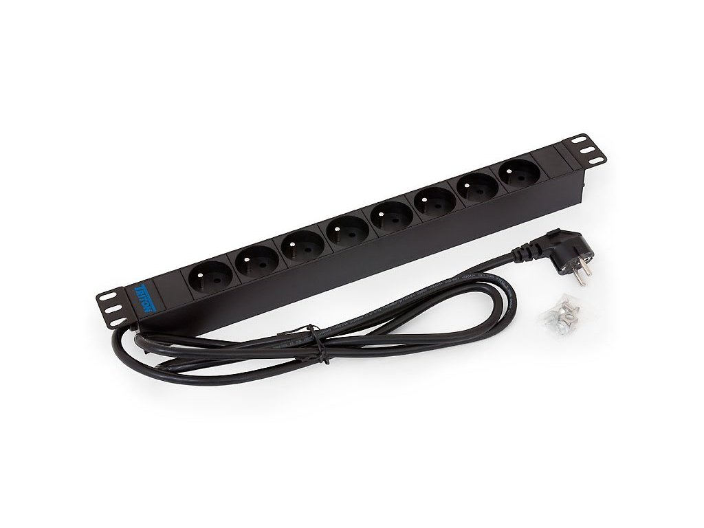 Triton RAB-PD-X01-A1; 19" rozvodný panel 1U s osmi zásuvkami podle ČSN, max. 16 A. Kabel je 2 m dlouhý s univerzální CZ-DE zástrčkou. ZÁKLADNÍ SPECIFIKACE; Počet zásuvek: 8; Rozměry kabelu: 3 x 1,5 x 2000 mm; Barva: černá...