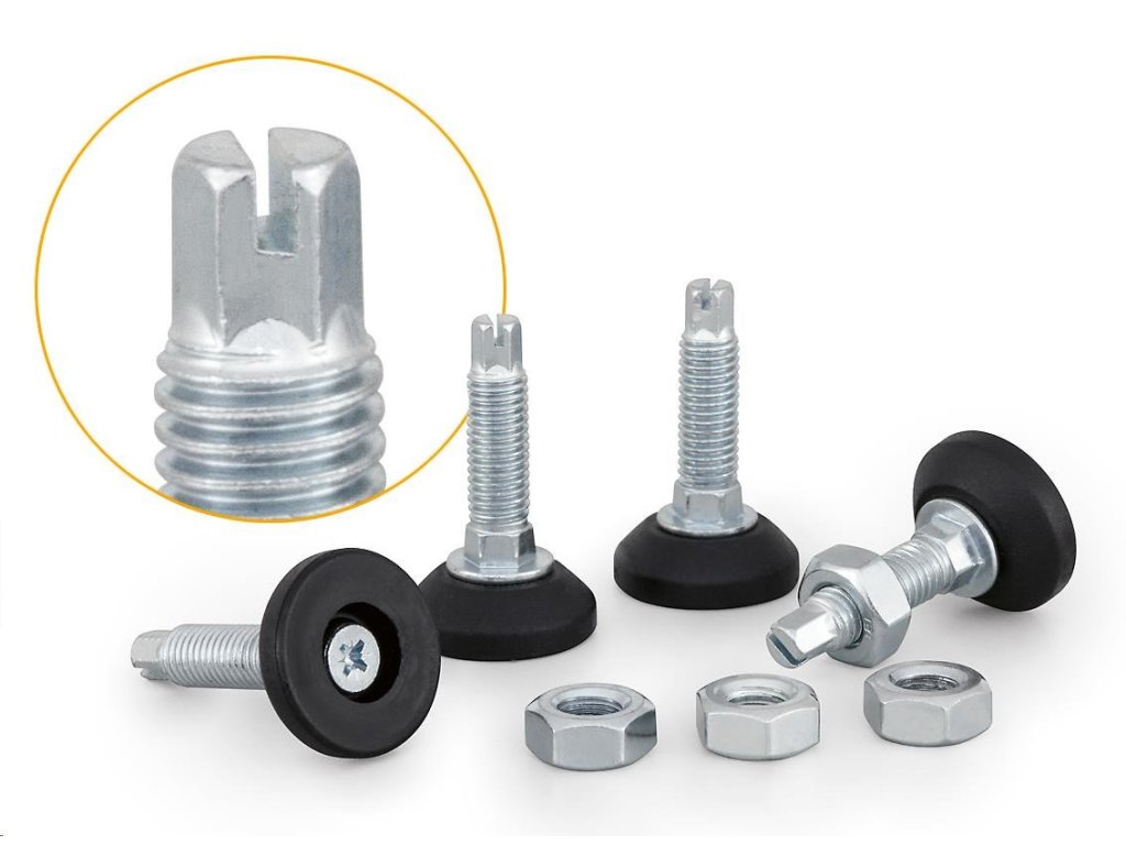 Sada nivelačných nožičiek pre stojanové rozvádzače, nastaviteľné zvnútra rozvádzača. Po rektifikácii je potrebné polohu zaistiť maticou..Dodatočné parametre