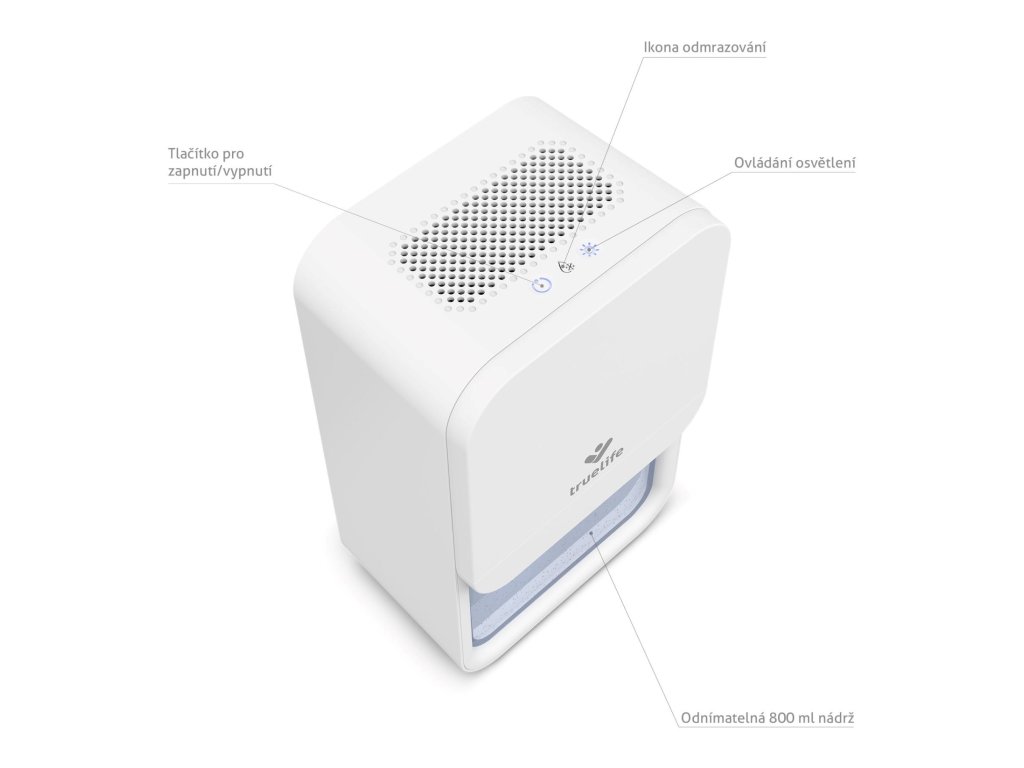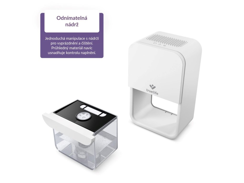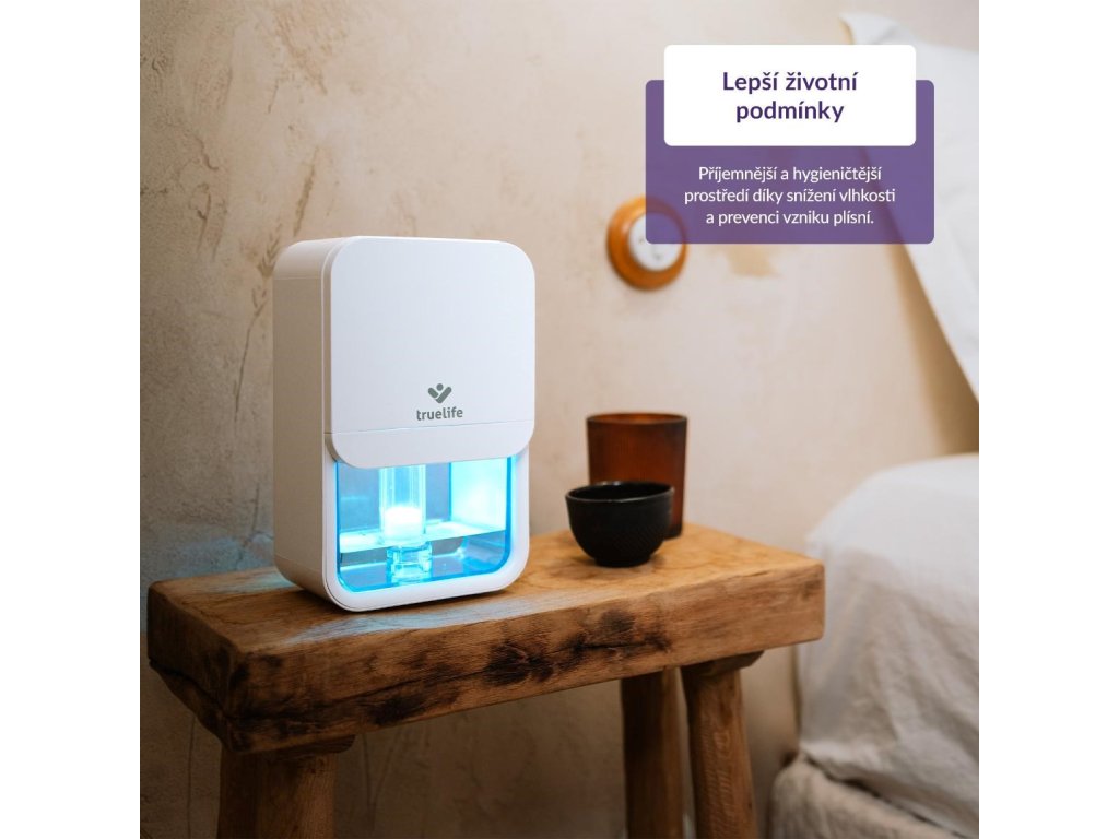 TrueLife AIR Dehumidifier DH3 bol navrhnutý s ohľadom na každodennú realitu, teda jeho hlavný cieľ je, aby fungoval spoľahlivo, ale zároveň nezaberal veľa miesta. Vďaka svojmu elegantnému a priestorovo úspornému dizajnu sa ľahko zmestí do spálne, obývačky či kancelárie, neznižujúc vizuálny vzhľad interiéru. Napriek tomu dokáže efektívne znižovať vlhkosť v miestnosti a vytvárať zdravšie prostredie, v ktorom sa vám bude lepšie dýchať.