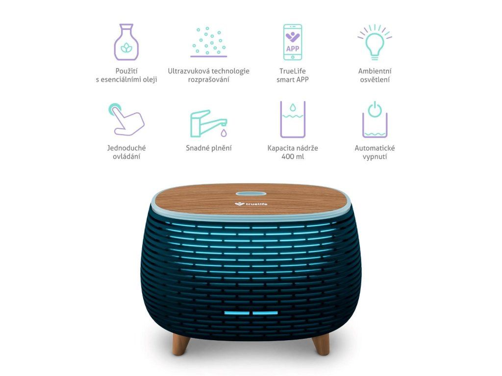Difúzer je možné prepojiť cez Wi-Fi s mobilnou aplikáciou TrueLife Smart a jej prostredníctvom ovládať.