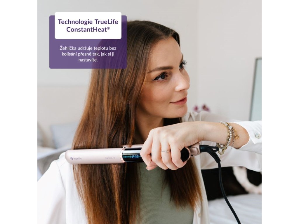 Technológia TrueLife ConstantHeat zaisťuje, že teplota zostáva konštantná počas celého procesu žehlenia. Vlasy sú tak chránené pred poškodením.