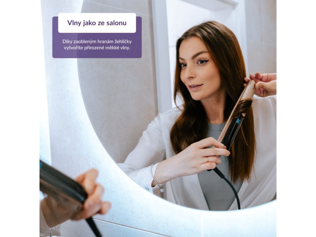 Vďaka zaobleným okrajom možno žehličku pohodlne používať aj na vytváranie mäkkých a pružných vlniek.