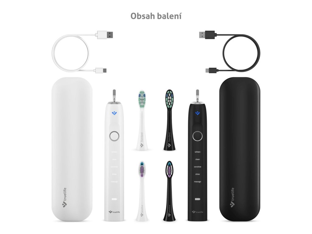 Zdravý úsmev je vizitkou nás všetkých. S balením dvoch sonických kefiek TrueLife SonicBrush Clean70 UV Duo bude starostlivosť o zuby a ďasná nielen dôkladná, ale navyše aj príjemná. Každá z kefiek čistí zuby rýchlosťou až 90 000 pohybov za minútu, čím odstráni až 12× viac zubného povlaku ako manuálna kefka. Sonická technológia SonicTrue jemnými vibráciami čistí plôšky zubov a vďaka víreniu vody s pastou vytvára mikrobublinky, ktoré preniknú aj do medzizubných priestorov. Tlakový senzor s technológiou SmartPressure stráži ideálny tlak a varuje pred nadmerným zaťažením ďasien či skloviny. Dobíjacie puzdro s UV sterilizáciou efektívne ničí až 99,9% baktérií a vírusov na hlaviciach. Kefky vydržia až 70 dní na jedno nabitie, disponujú 5 režimami čistenia a 2 typy hlavíc (Standard a Sensitive). Chytrý časovač stráži odporúčané 2 minúty čistenia a funkcia pamäte uchová posledný zvolený režim. Vďaka vysoko citlivému vibračnému senzoru sa kefka automaticky aktivuje a rozsvieti, akonáhle ju vezmete do ruky. Špeciálna jemne pogumovaná povrchová úprava rukoväte je príjemná na dotyk a zabraňuje kĺzaniu aj pri použití s vodou.