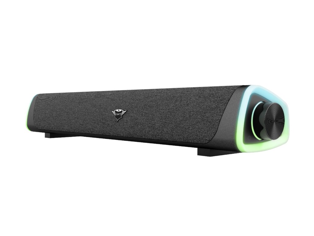 Trust GXT 620 AXON herní soundbar RGB s osvětlením duhovými vlnami a snadno přístupným ovládáním hlasitosti. Klíčové vlastnosti *Herní soundbar (12 W) pro upgrade vašeho herního zvuku *Tenký, prostorově úsporný design se snadno vejde pod monitor TV nebo PC *RGB osvětlení duhové vlny, které odpovídá vašemu nastavení *Provádějte rychlé úpravy hlasitosti při hraní s velkým ovládacím kolečkem *Přehrávejte hudbu ze zařízení s analogovým (3,5 mm) vstupem Technické parametry *Typ reproduktoru: Soundbar *Speciální funkce: RGB *Typ připojení: kabelové *Výstupní výkon (špička): 12 W *Výstupní výkon (RMS): 6 W *Frekvenční odezva: 20 Hz - 20 000 Hz *Impedance reproduktoru: 4 ohmy *Vstupní impedance: 10 000 ohmů *Zvukový vstup: 3,5 mm *Rozměry: 68 x 420 x 78 mm *Celková hmotnost: 713 g Odkaz na web výrobce: https://www.trust.com/en/product/24482-gxt-620-axon-rgb-illuminated-soundbarDodatočné parametre