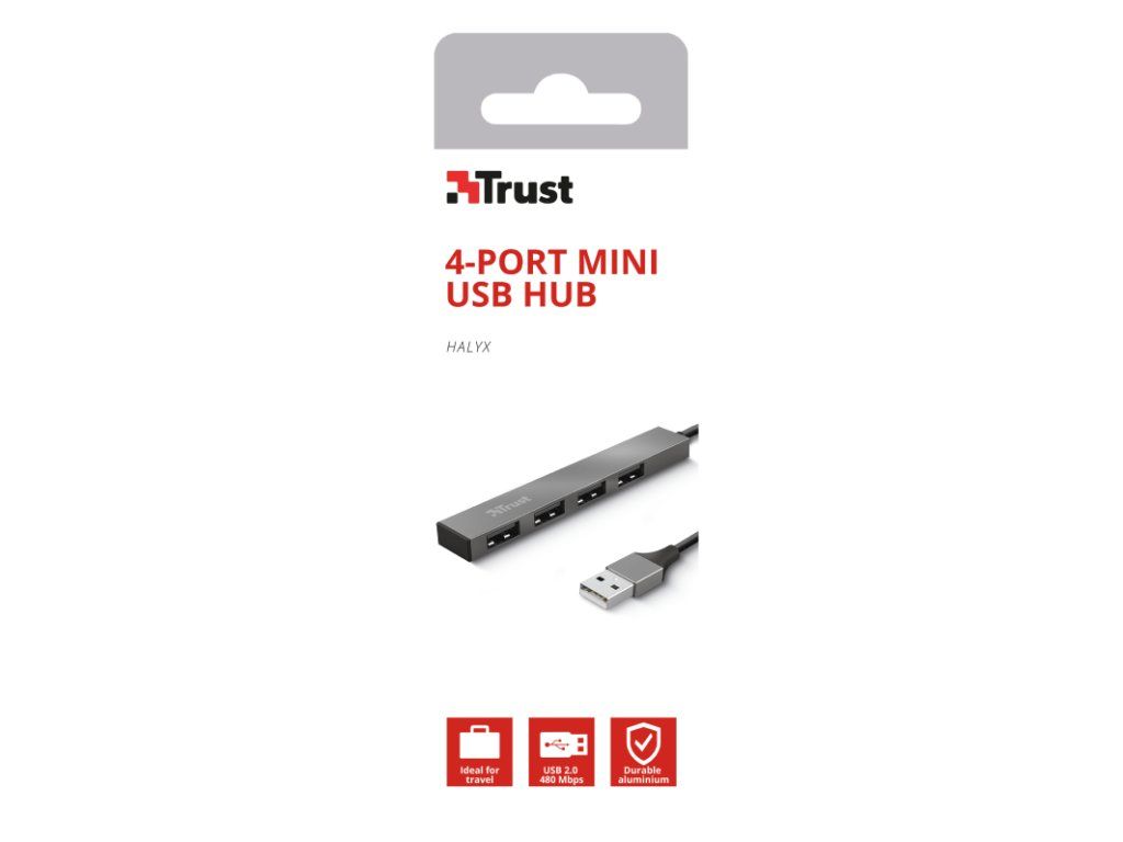 Vlastnosti produktu: *Přidejte 4 standardní porty USB 2.0 pro přenos dat nebo připojení zařízení. *Pracujte na každém počítači nebo notebooku s portem USB-A *Malý a lehkým, ideální pro cestování *Robustní a stylový design s hliníkovým pouzdrem *Podporuje USB 2.0 (až 480 Mbps) Technické specifikace: *Rozměry: 96 x 15 x 7 mm (VxDxH) *Hmotnost: 19 g *Počet USB 2.0 portu: 4 *Délka kabelu: 100 mm Podporované OS: Chrome OS, Mac OS, Windows, Linux Stránky výrobce: https://www.trust.com/en/product/23786-halyx-aluminium-4-port-mini-usb-hubDodatočné parametre