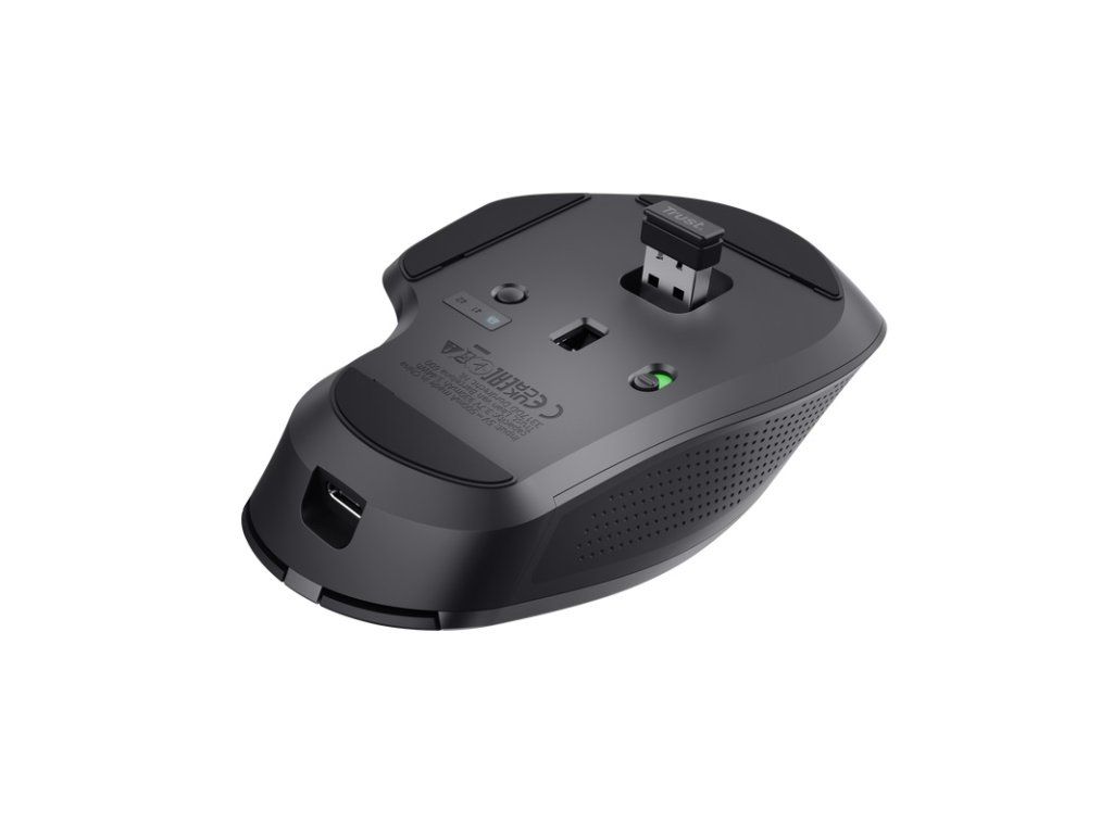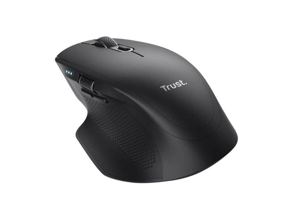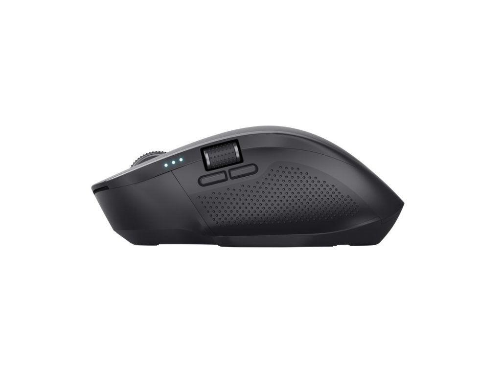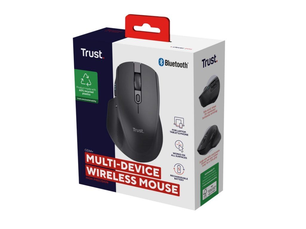 Trust Ozaa+ bezdrátová myš pro více zařízení vysoce přesná s připojením pro více zařízení, tichými tlačítky a dvěma rolovacími kolečky * mikropřijímač USB uložitelný uvnitř myši * možnost připojení několika zařízení přes bezdrátový 2,4GHz přijímač a 2× připojení přes Bluetooth * boční kolečko a optické horní kolečko pro rychlé standardní a horizontální posunování * vestavěná dobíjecí baterie s ukazatelem nízké úrovně nabití a vypínačem – výdrž až 3 měsíce * programovatelná tlačítka pro úpravu konfigurace podle vašeho stylu práce * vyrobeno z 60% z recyklovaných plastů Technické parametry Rolovací kolečko: 2× Počet tlačítek: 6 Programovatelná tlačítka: ano Rozhraní/konektivita: RF 2,4GHz, Bluetooth, (USB-C) Bezdrátový dosah: 10m Napájení: dobíjecí baterie (nabíjení přes USB-C kabel) Výdrž baterie: až 3 měsíce Nastavitelné DPI: ano (800dpi - 3200dpi) Rozlišení senzoru: 800, 1600, 3200dpi Snímač pohybu: optický Ukazatele: nabíjení, úroveň nabití baterie, baterie je vybitá, DPI, stav připojení Barva: černá Rozměry: 120×80×46mm Hmotnost: 104g Doporučené požadavky na systém: - volný port USB nebo Bluetooth - Windows, macOS, iOS, Chrome OS (Android) Obsah balení: * myš * USB mikro přijímač * nabíjecí kabel * uživatelská příručka Záruka: 2 rokyDodatočné parametre