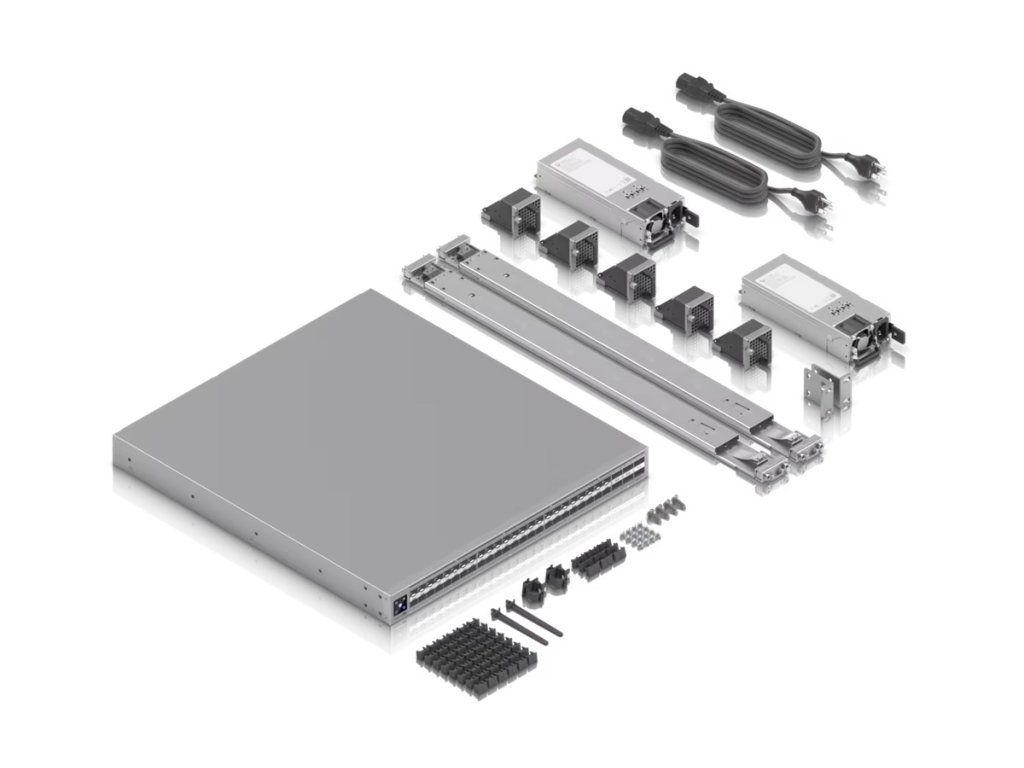 ROZMĚRY A PROVEDENÍ Rozměry: 442,4 × 43,7 × 496 mm Provedení: Rack mount (1U, Full-Depth) PORTY SFP28: 48× (25G / 10G) QSFP28: 6× (100G / 40G) VÝKON Přepínací kapacita: 3,6 Tbps Non-blocking propustnost: 1,8 Tbps Forwarding rate: 2,4 Bpps Buffer paměť: 24 MB L2 / L3 TABULKY VLAN: 1 000 MAC adresa tabulka: 128 000 ARP záznamy: 96 000 IPv4 trasy: 288 000 ACL IPv4: 512 pravidel MAC: 512 pravidel L3 FUNKCE DHCP Server: Ano DHCP Relay: Ano Inter-VLAN routing: Ano Statické směrování: Ano L2 FUNKCE LACP: Ano MC-LAG: Ano STP / RSTP: Ano IGMP Snooping: Ano IGMP Querier / Fast Leave: Ano DHCP Snooping & Guarding: Ano Omezení rychlosti: Ano Port isolation: Ano Port mirroring: Ano Jumbo frames: Ano LLDP-MED: Ano Voice VLAN: Ano Loop protection: Ano NAPÁJENÍ Napájení: (2) AC vstup 100–240 V Zdroj: (2) Hot-swappable 550 W Max. příkon: 340 W PROVEDENÍ Materiál šasi: Ocel SGCC Konstrukce držáků: Ocel SGCC CHLAZENÍ Ventilátory: (5) hot-swappable DISPLEJ Displej: 1,3'' dotykový LCM ODOLNOST ESD ochrana: ±12 kV vzduch / ±8 kV kontakt PROVOZNÍ PODMÍNKY Teplota: -5 až 40 °C Vlhkost: 10–95 % (nekondenzující) DALŠÍ Etherlighting™: Ano NDAA compliant: Ano Certifikace: CE, FCC, IC, Anatel SOFTWARE Aplikace: UniFi Network Minimální verze: 8.5.6Dodatočné parametre
