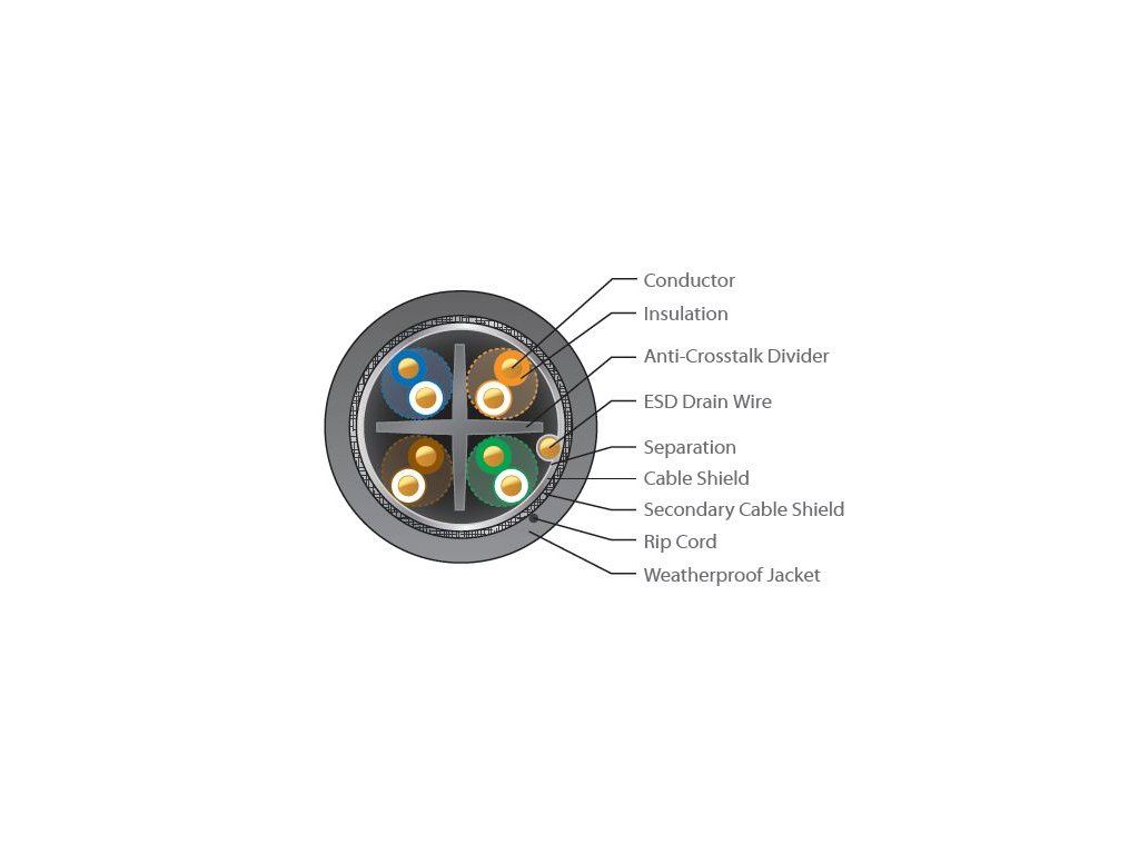 PŘEHLED TOUGHCableCARRIER je speciálně designovaný stíněný SFTP kabel kategorie 5e pro extrémní nasazení do nejnáročnějších meteorologických podmínek zásadně eliminující rizika poškození venkovních instalovaných aktivních prvků atmosférickým přepětím. SPECIFIKACE * Provedení: venkovní * Typ stínění: SFTP * Kategorie: Cat5e, stíněný * Průřez: 24AWG * Průměr: 6,8mm * Barva: černá * Provedení kabelu: drát * Balení/návin: 1000ft/305mDodatočné parametre