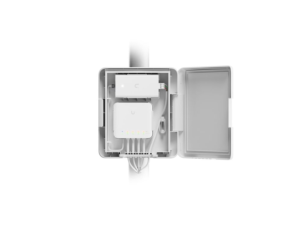 USW-Flex-Utility Popis produktu: USW-Flex-Utility je venkovní krabice odolná proti povětrnostním vlivům speciálně navržená pro použití s UniFi Switch Flex (USW-Flex) zařízením. USW-Flex-Utility lze snadno namontovat na jakýkoliv sloup, poskytuje naprosto jednoduchou správu kabelů a zabezpečení šroubem. Funkce: *Venkovní kryt odolný proti povětrnostním vlivům *Max. PoE rozpočet 46W *Čisté vedení kabelů a šroubový zámek pro zabezpečení *Zahrnuje ethernetový patch kabel a 60W PoE adaptér *Kompatibilní s Switch Flex Obsah balení:Dodatočné parametre
