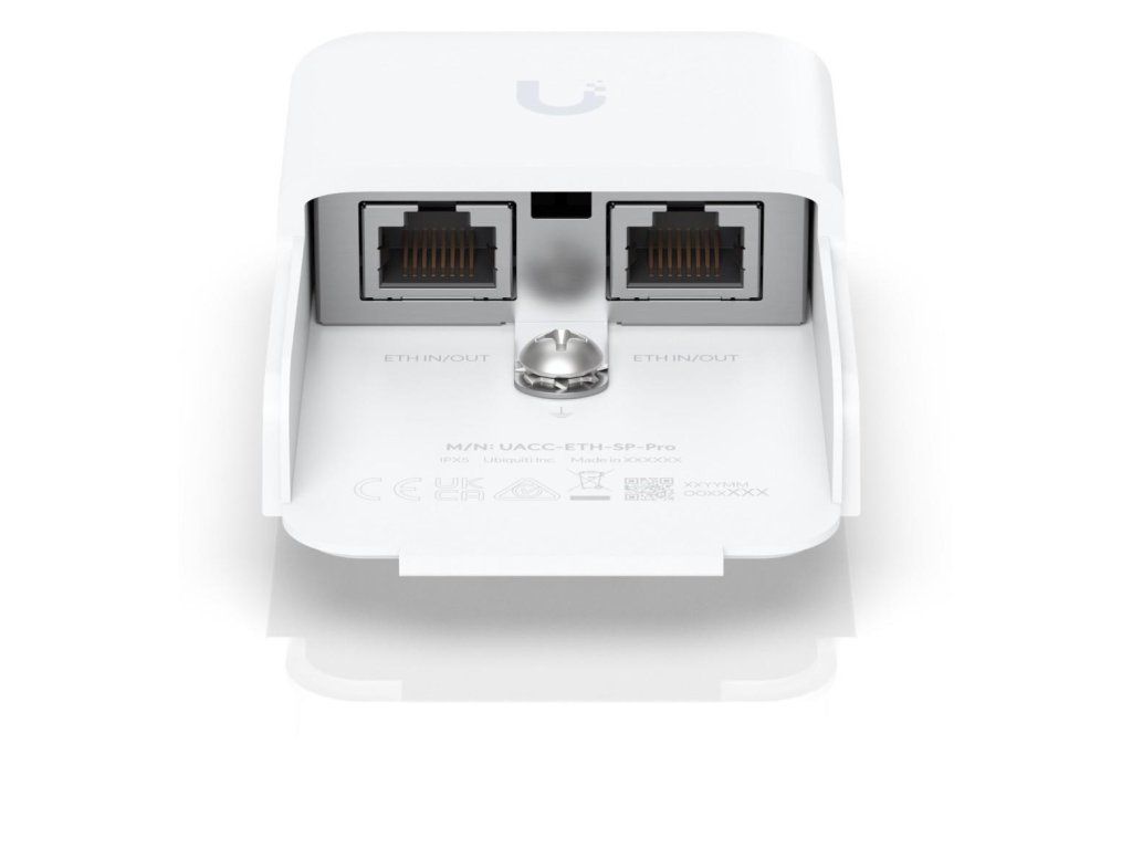 Popis produktu Ubiquiti UACC-ETH-SP-Pro je přepěťová ochrana od výrobce Ubiquiti pro venkovní jednotky. Jedná se o účinnou ochranu zařízení (včetně PoE napájených zařízení) s rychlostí připojení až 10 Gbps, která umožní přesměrovat škodlivé elektrostatické výboje a přepětí přímo do UACC-ETH-SP-Pro a zajistí bezpečné uzemnění. Vaše síťová zařízení tak zůstanou vždy chráněna. Přepěťová ochrana UACC-ETH-SP-Pro je vybavena dvěma porty RJ-45 (vstup + výstup) a podporuje průchod PoE napájení. Vysoká ochrana před špičkovým proudem První generace nabízela ochranu před špičkovým proudem 5kA, u druhé generace byl nárůst na 10kA a verze Pro nabízí ochranu dokonce před 20kA. Technické parametry Konektory a rozhraní Gigabit LAN:Ano Fyzické charakteristiky Stupeň krytí:IPX5 Použití:Venkovní Hmotnost [g]:80 Šířka [mm]:61 Výška [mm]:91 Hloubka [mm]:33Dodatočné parametre