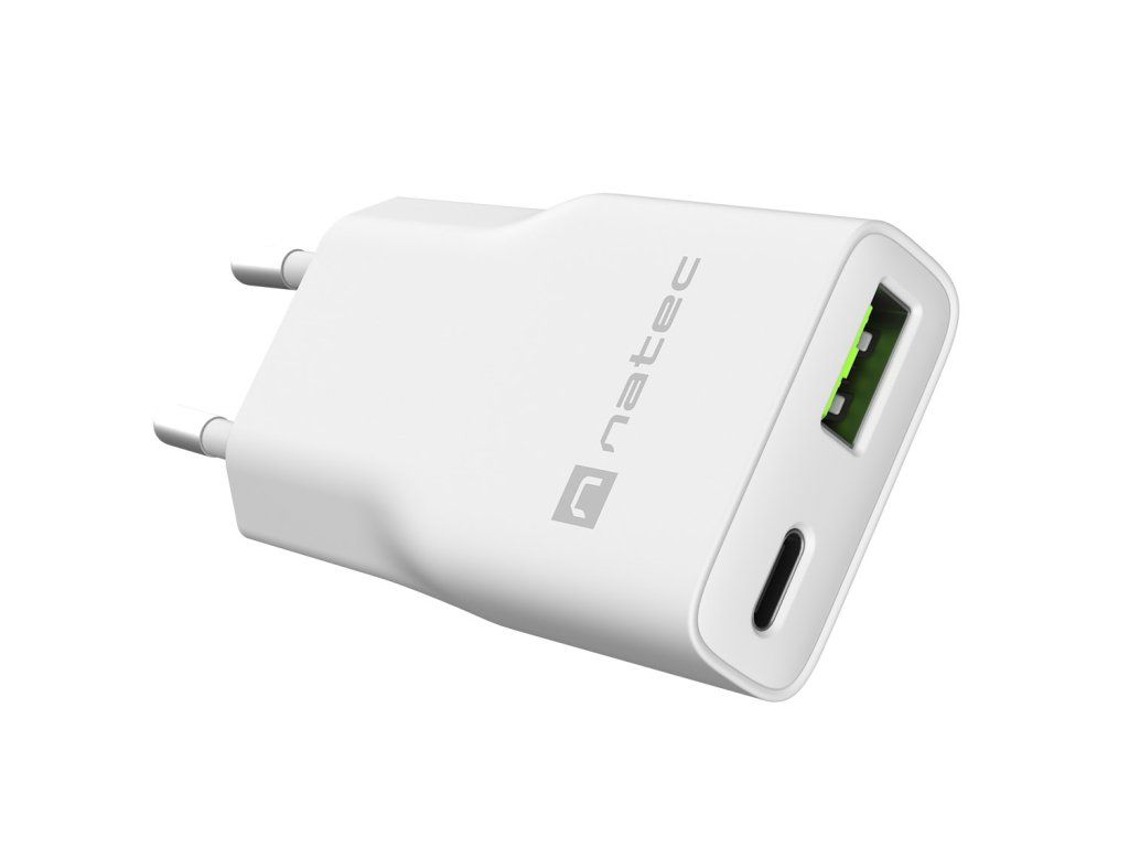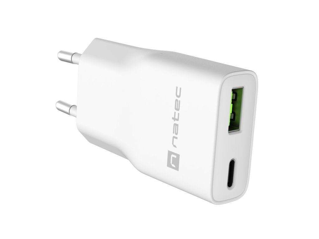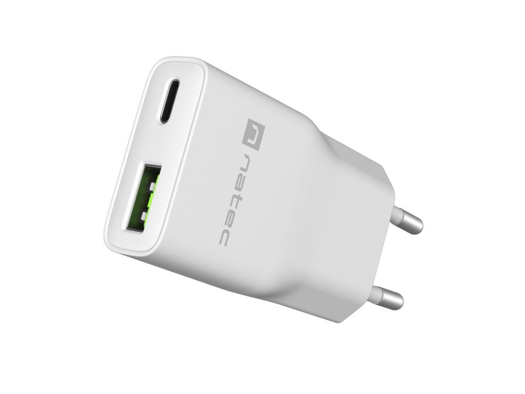 Univerzálna USB nabíjačka Natec RIBERA GaN SLIM, 20 W, 1X USB-A + 1X USB-C, Biela NUC-2376