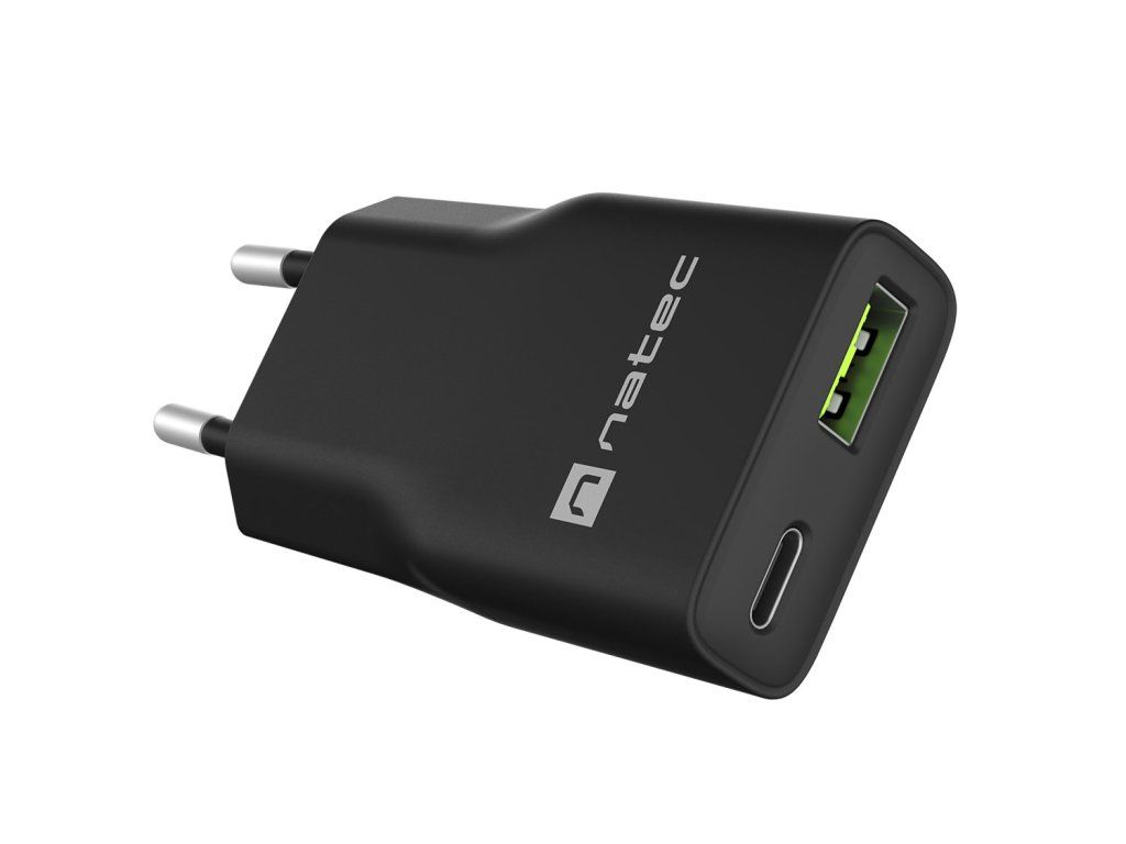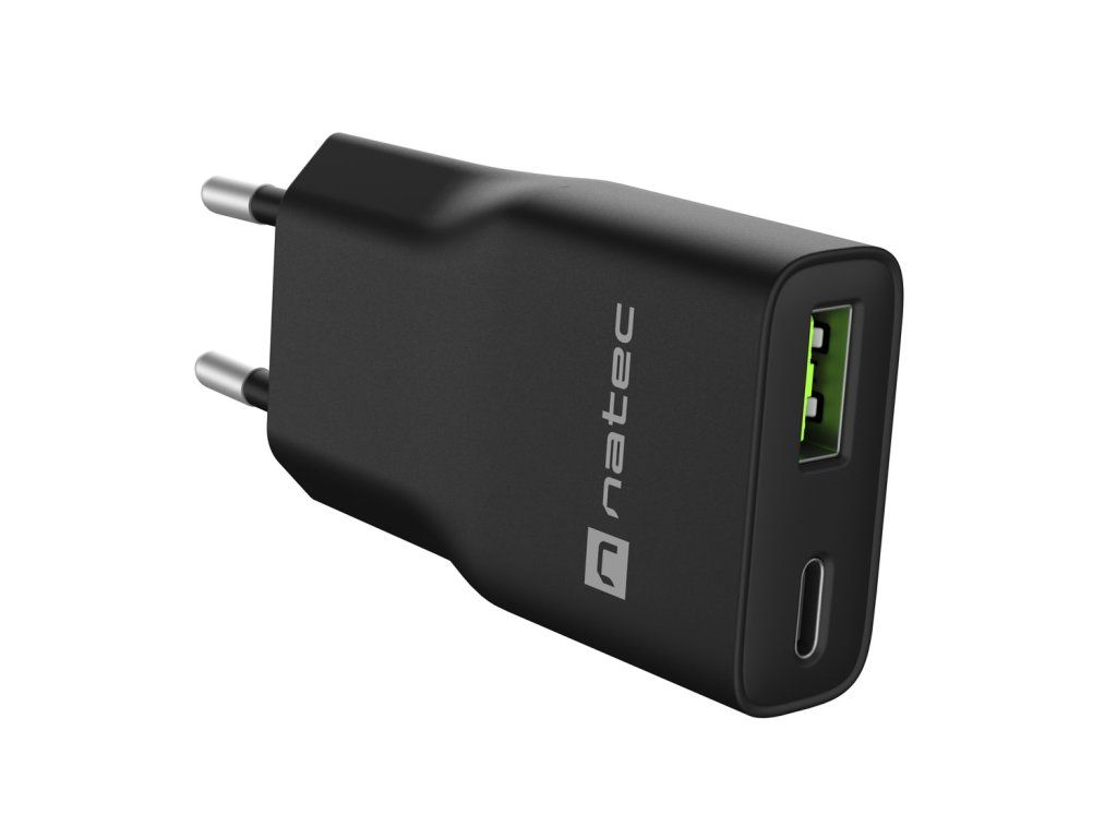 Univerzálna USB nabíjačka Natec RIBERA GaN SLIM, 20 W, 1X USB-A + 1X USB-C, Čierna NUC-2377