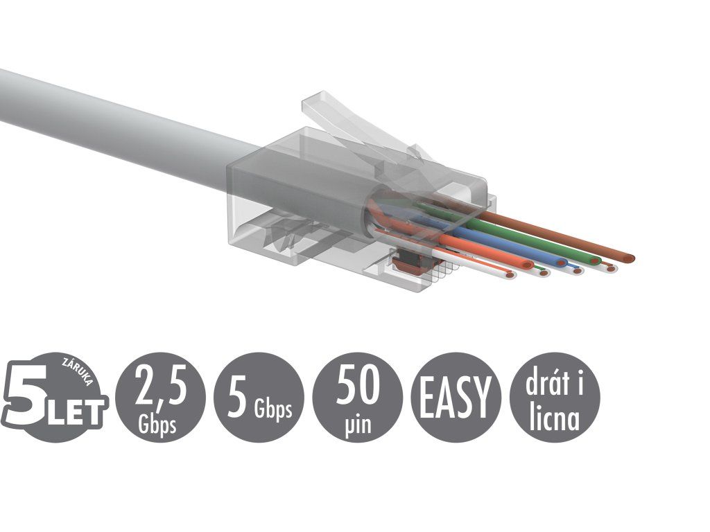 Univerzálny EASY konektor RJ45 CAT5E UTP 8p8c na drôt aj licnu SXRJ45-5E-UTP-EASY 100ks 11239000