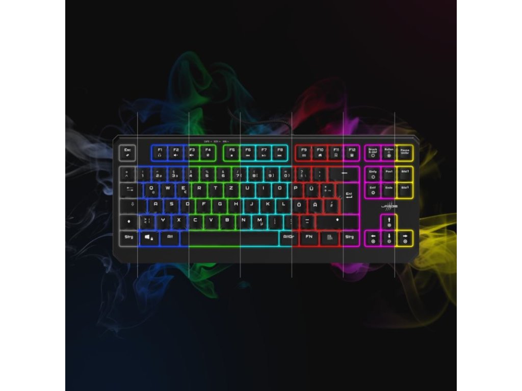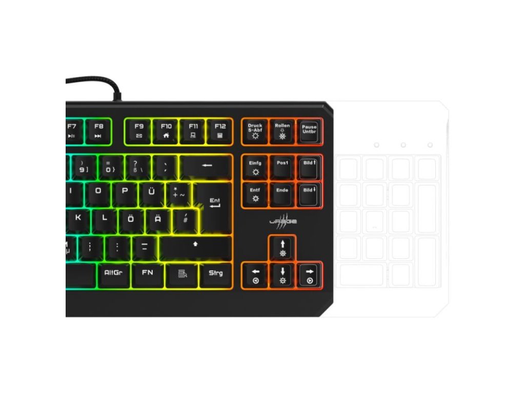 RGB podsvietenie: Vytvorte si dokonalú hernú atmosféru pomocou podsvietenia so 7 rôznymi farbami. Podsvietenie môžete jednoducho zapnúť, vypnúť alebo prepínať podľa nálady. Vďaka integrovanej pamäti si klávesnica zapamätá vaše posledné nastavenie osvetlenia.