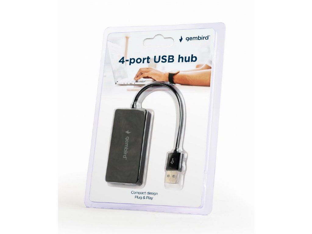 UHB-U2P4-04 4-port USB hub, black Compact design Plug & Play 4-port USB Hub USB 2.0 - fast data transfer rate up to 480 Mbps Practical integrated USB cable Specifications Interface: 4 x USB 2.0, Max 480 mbps Power: 5 VDC±10%, up to 60 ma Material: plastic Dimensions (LxWxH): 100 x 31 x 12 mm Net weight: 32 g Built-in USB cable: 15 cm System requirements Windows 7/8/10 Free USB portDodatočné parametre