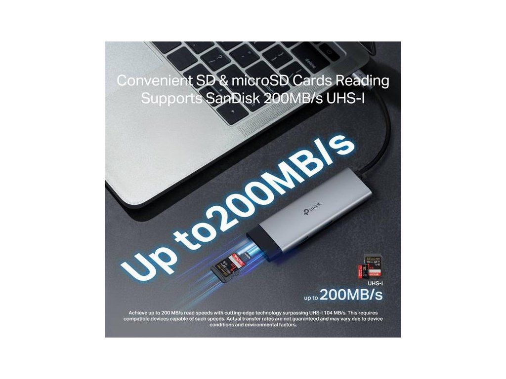 SD a microSD UHS-I: Jednoduchý prenos dát na kartách SD a microSD (až 200 MB/s). Zažite bezproblémovú správu dát vďaka možnosti súčasného čítania a zápisu na karty microSD aj SD.